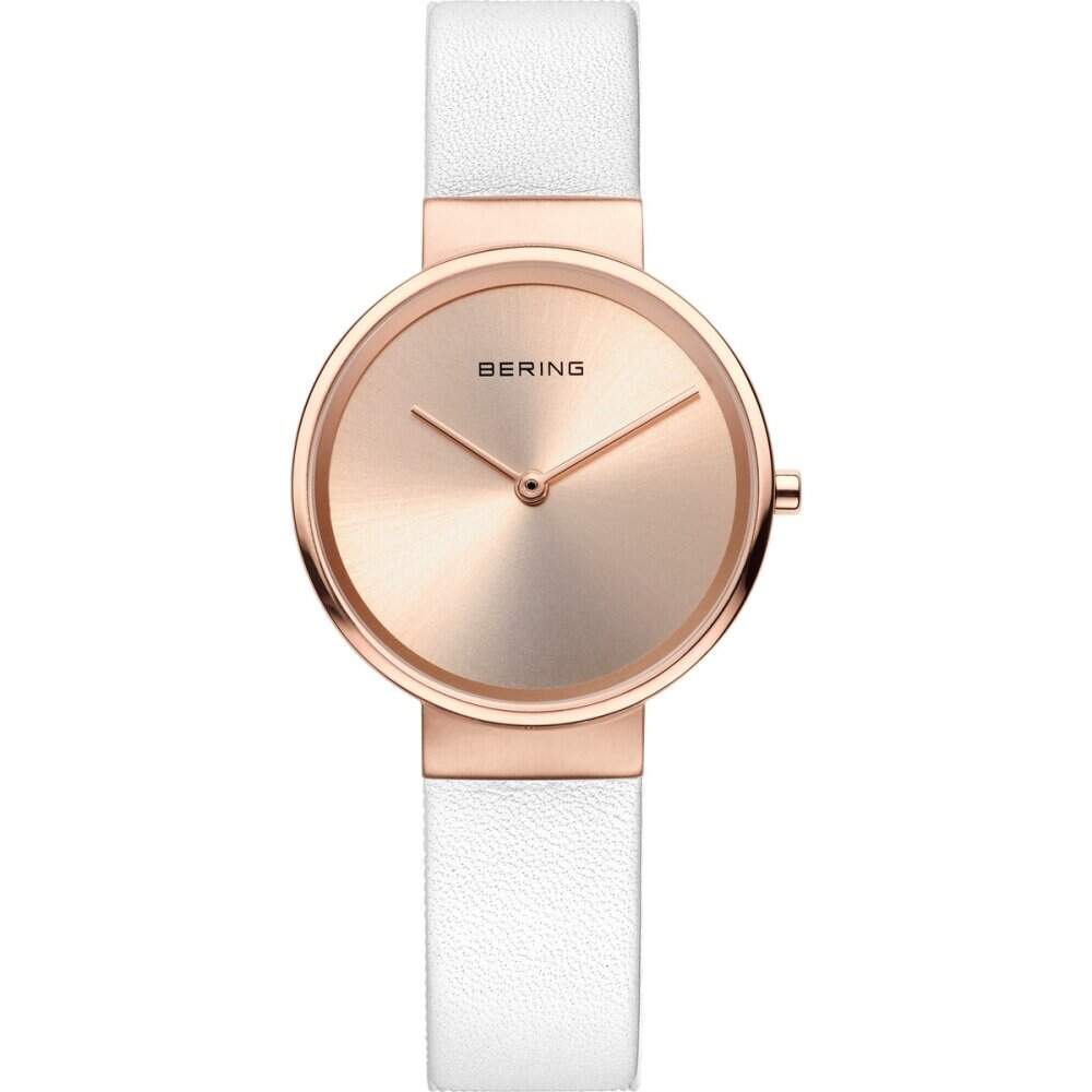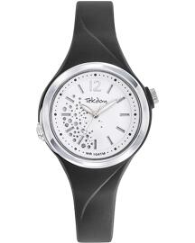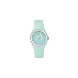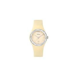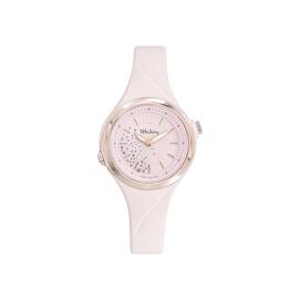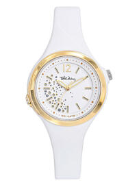 Tekday-Uhr, rundes Gehäuse aus weißem Harz, Ø 33 mm, weißes Zifferblatt, weißes Silikonarmband.