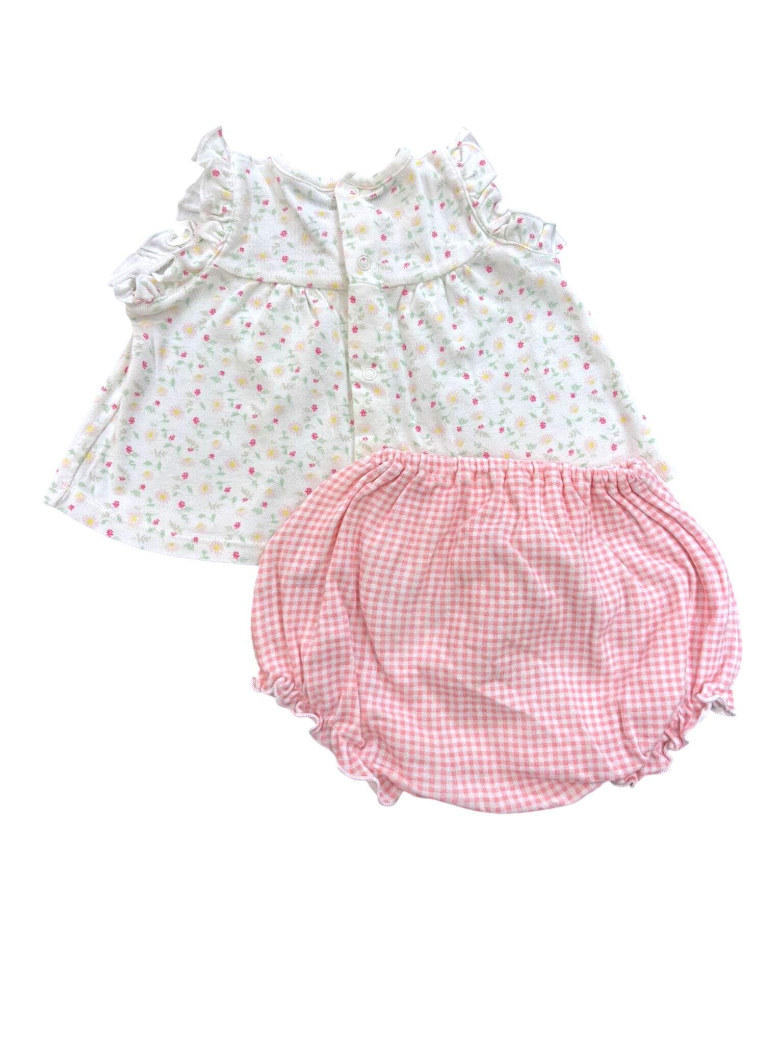Petit Bateau Weißes Top mit Blumenmuster und rosa Karo-Bloomers-Set (3 Monate)