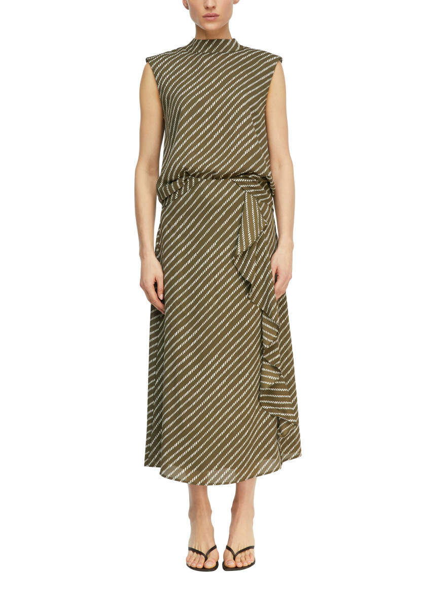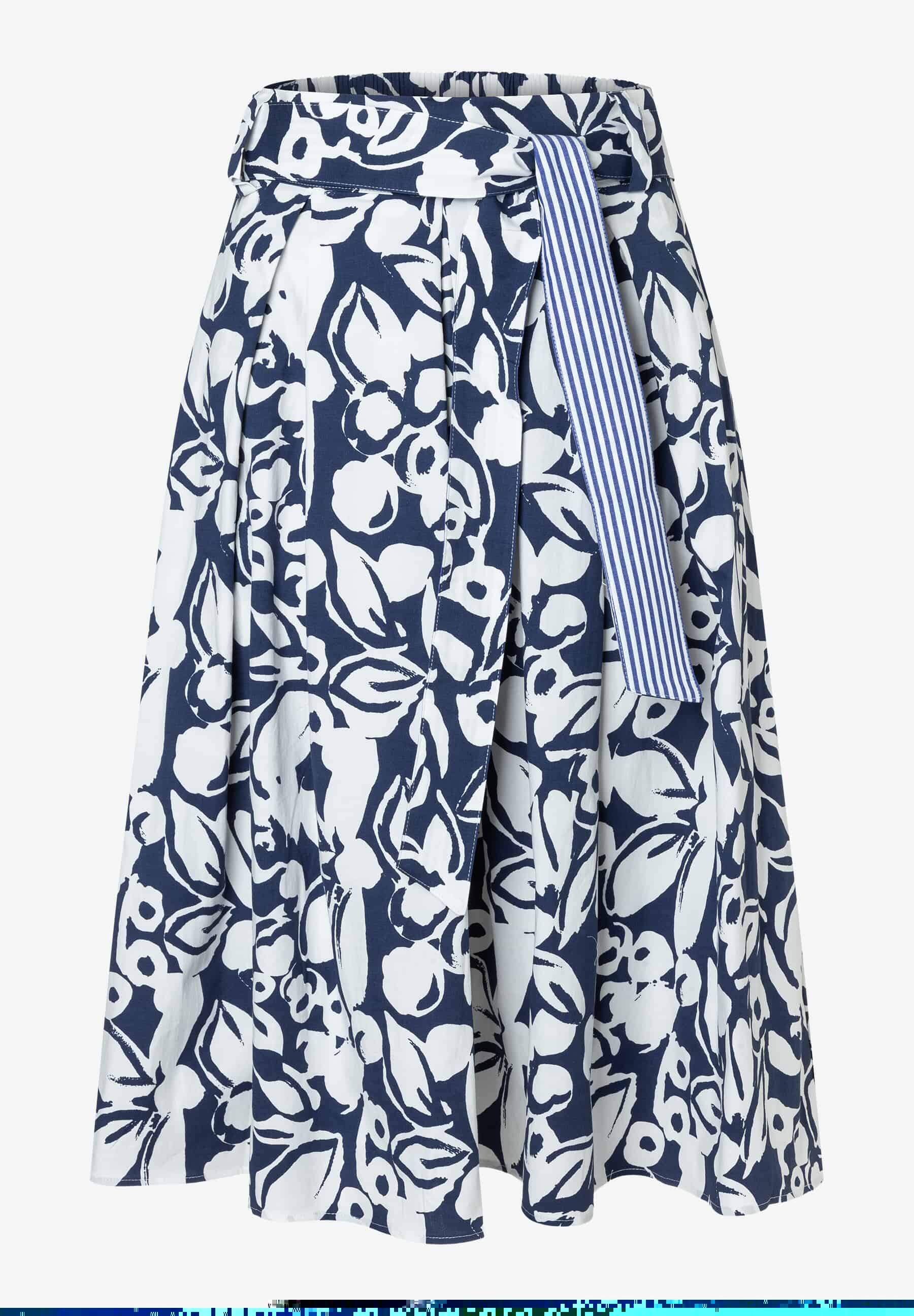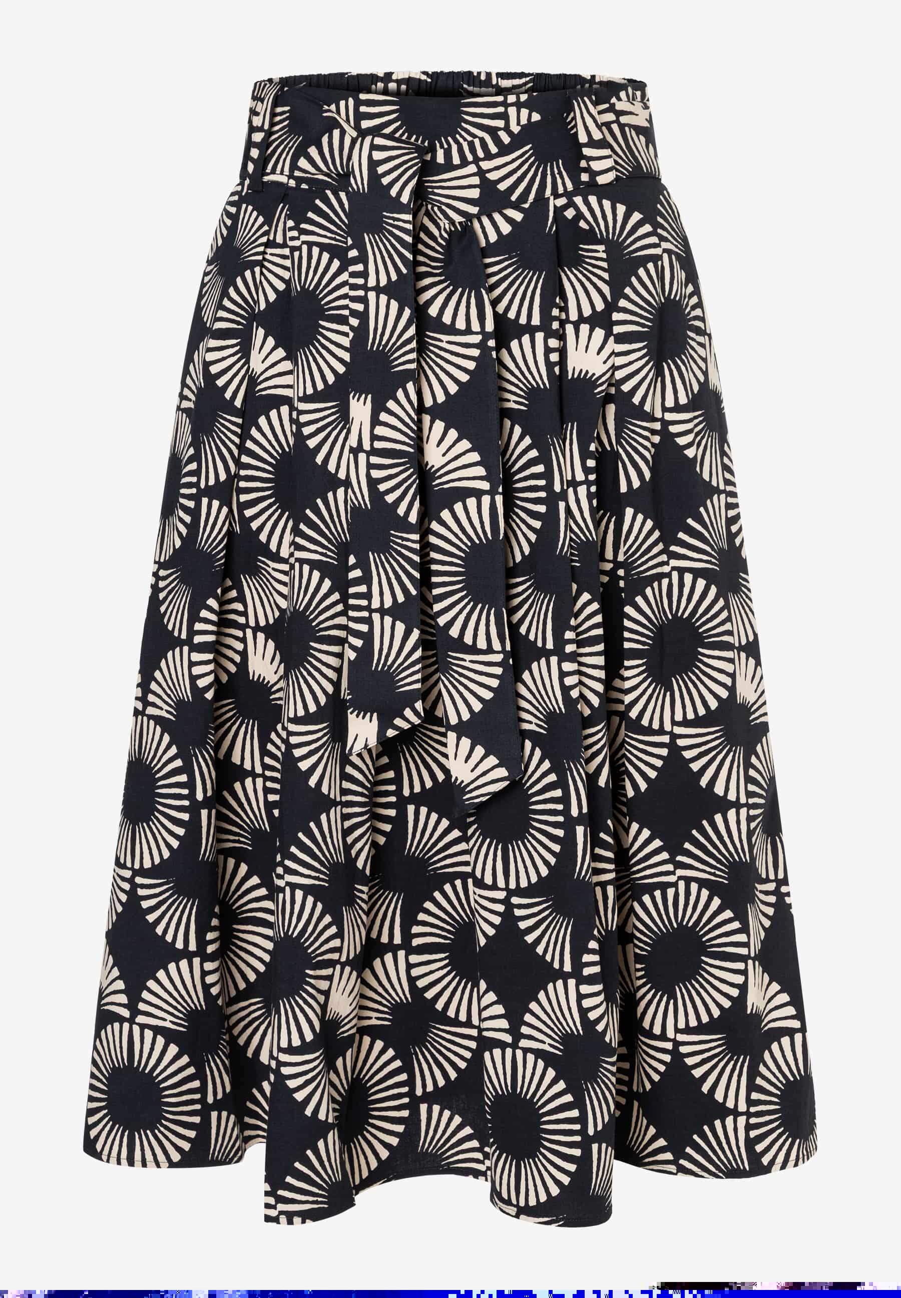 Ausgestellter Midirock mit Allover-Muster und Bindegürtel
