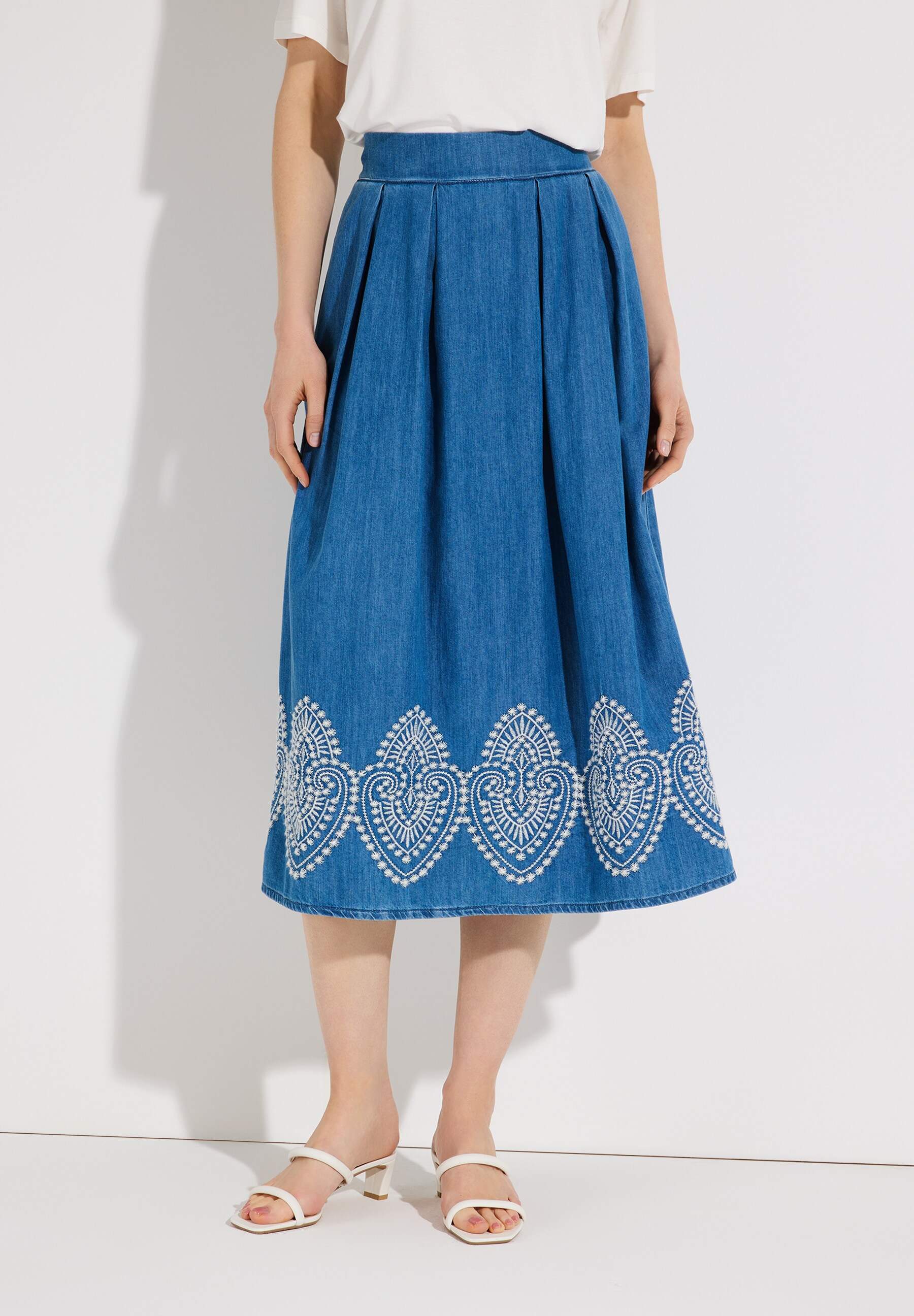 Midi-Jeansrock in ausgestellter A-Linien-Form