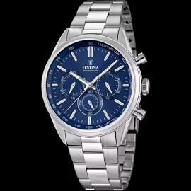 Reserviert: FESTINA TIMELESS CHRONOGRAPH-Uhr, blaues Zifferblatt, 43,5 mm, Stahlarmband