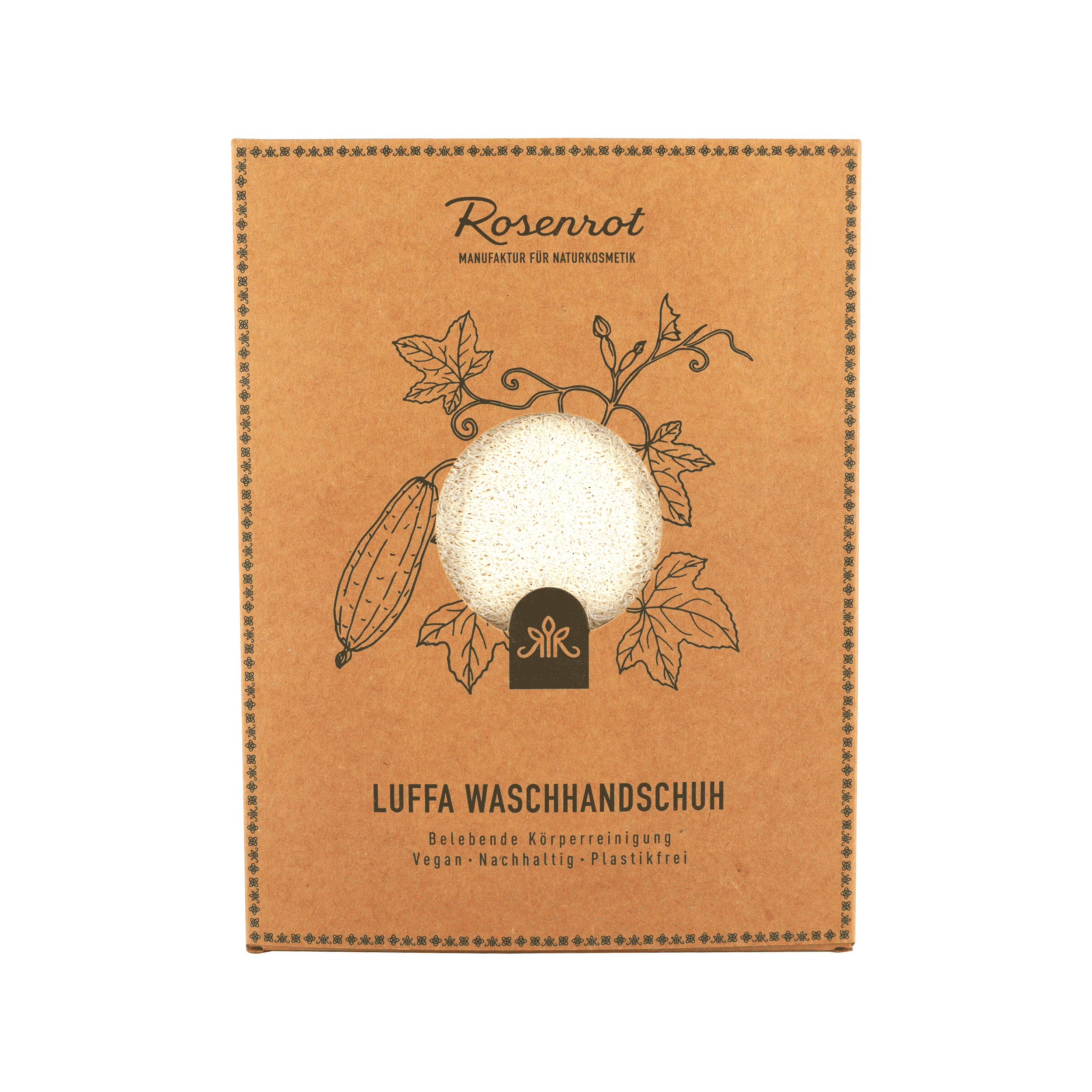 Rosenrot Luffa Waschhandschuh, Vegan, Plastikfrei, Peeling-Effekt, aus der Schwammkürbis Pflanze