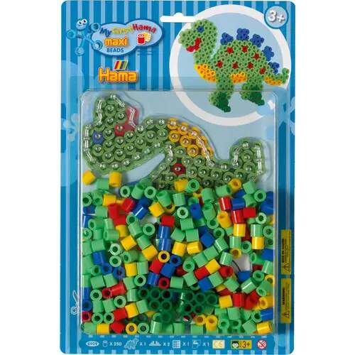 HAMA 8909 Bügelperlen Dinosaurier - Blisterset Dino - 1 Stiftplatte Dinosaurier, 250 Perlen, ab 3 Jahren