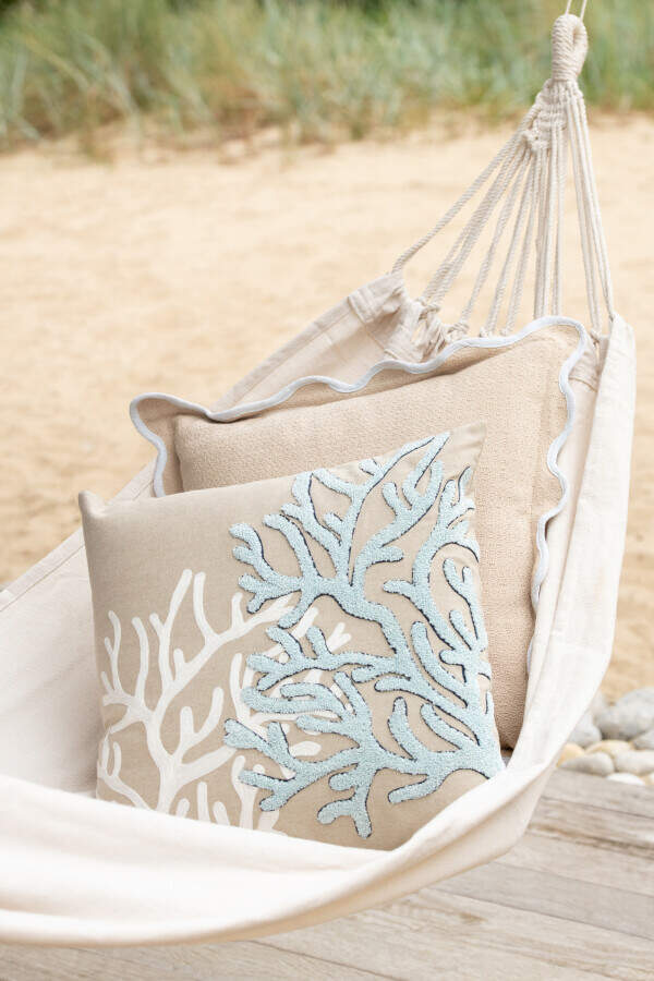 Coconut Island - Kissen Koralle Baumwolle Greige/Hellblau (61777) 45 x 45 cm