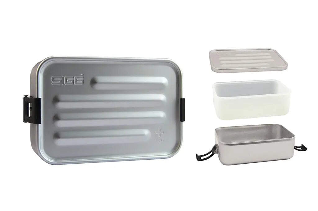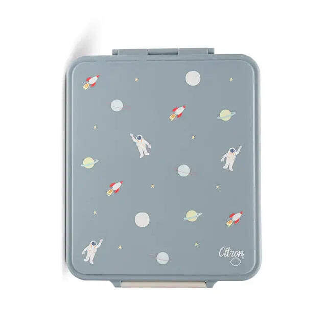 Große Lunchbox mit 4 Fächern und 1 Vorratsglas - Raumschiff - Staubblau