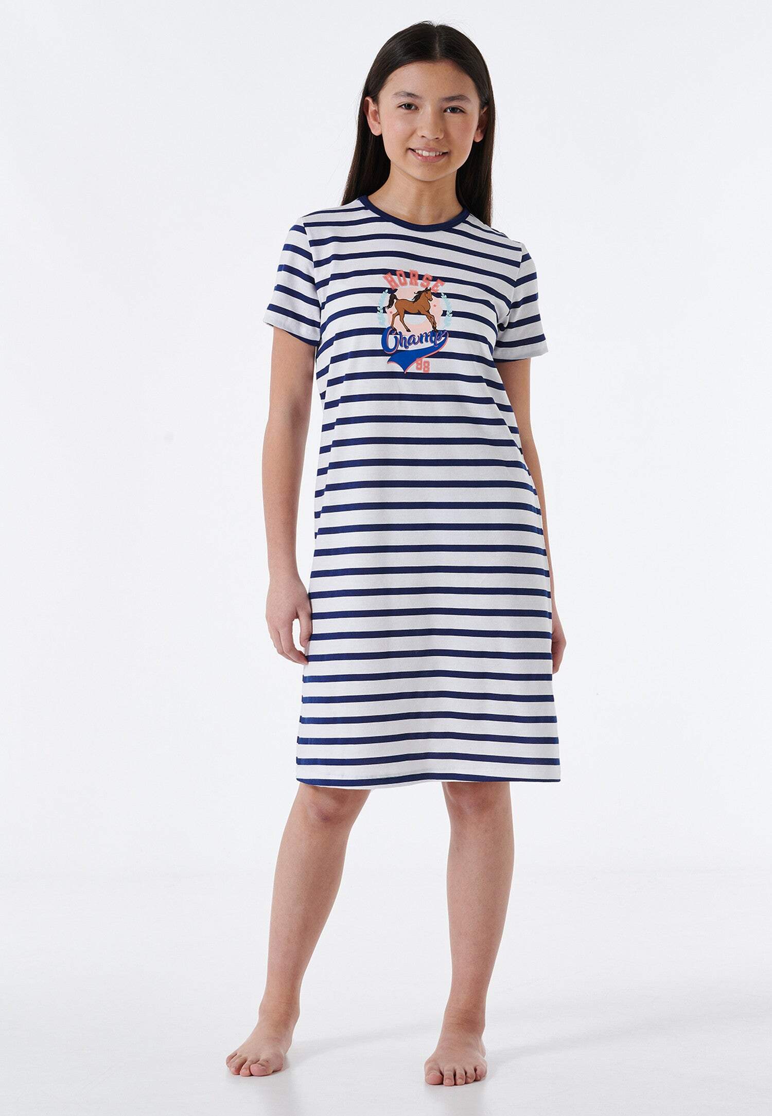 Nachthemd kurzarm gestreift Pferd weiß - Horse World