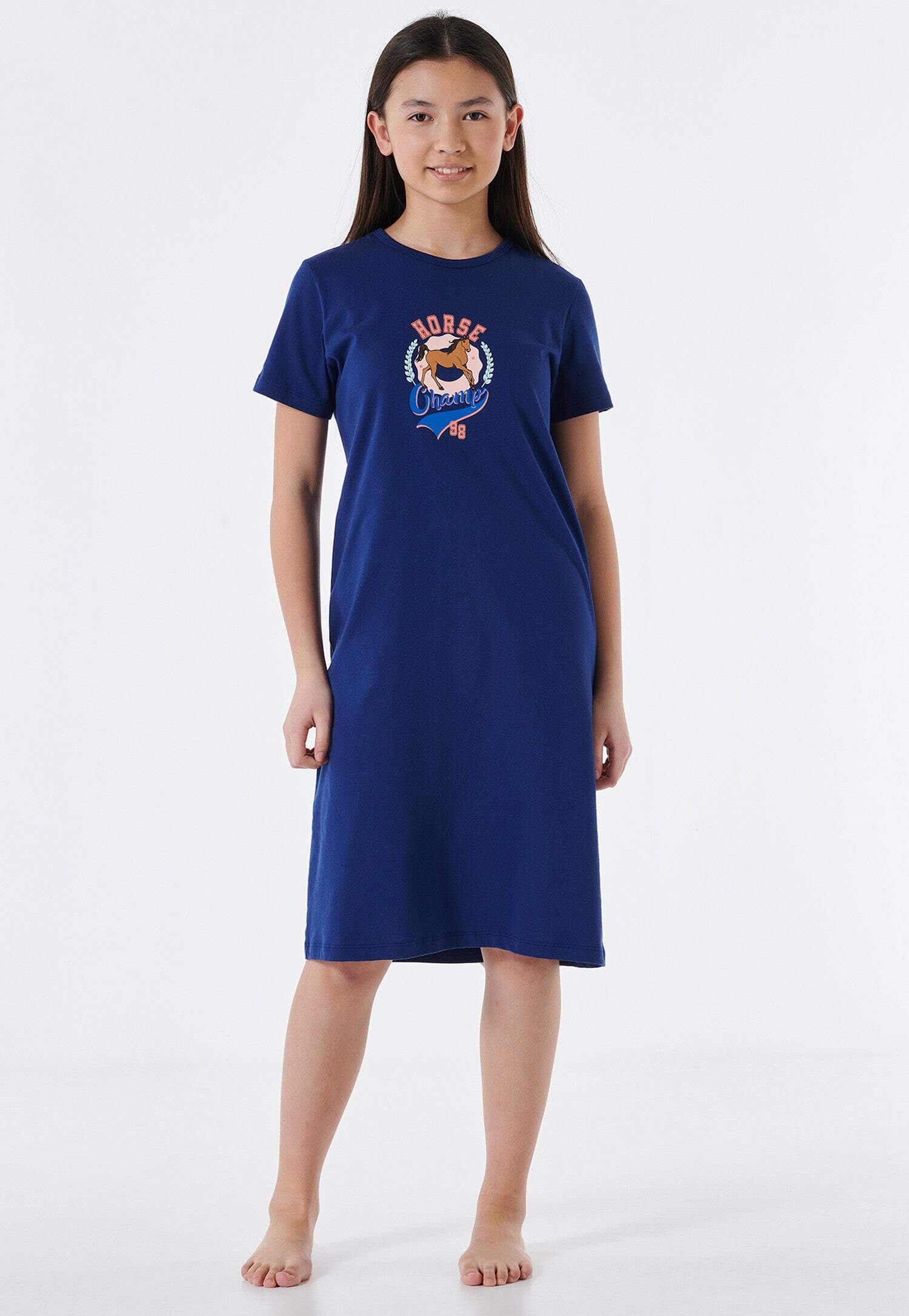 Kurzärmeliges Nachthemd Pferd dunkelblau - Horse World
