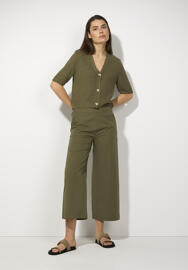 Satinbluse mit V-Ausschnitt und feinen Rippdetails