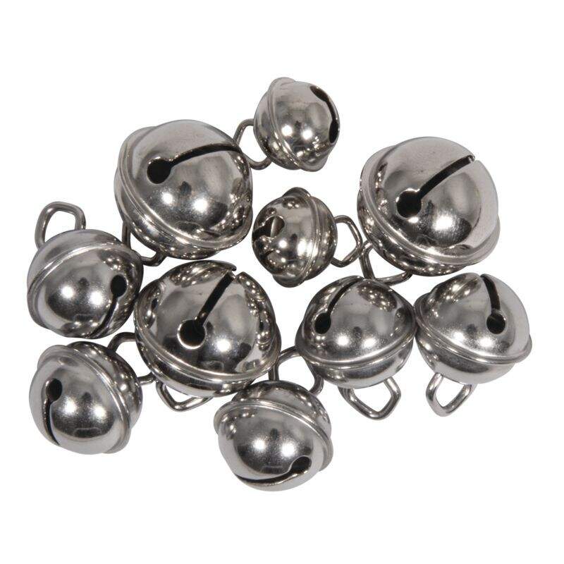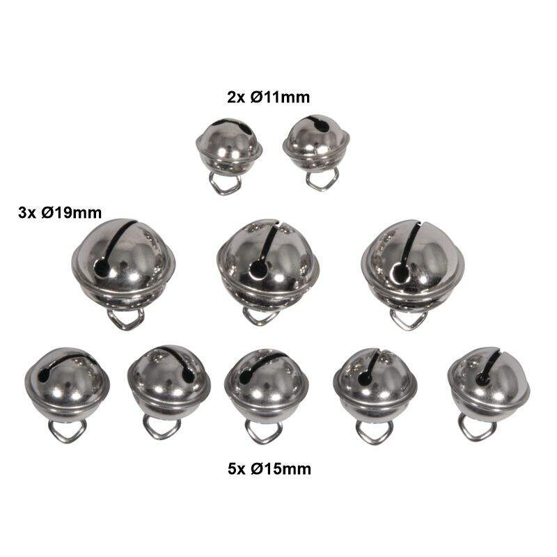 Silberfarbige Rollenglöckchen, Metallglöckchen MIX Ø11mm, Ø15mm, Ø19mm