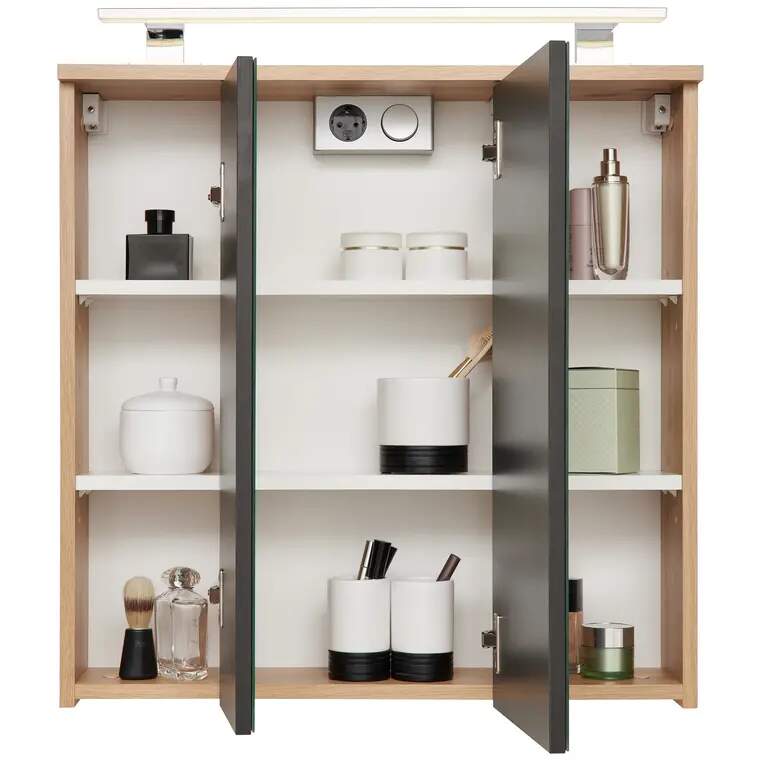 Küchenblock - Macadamia - Eiche Artisan - mit E-Geräten - Kühlschrank links - 270 cm