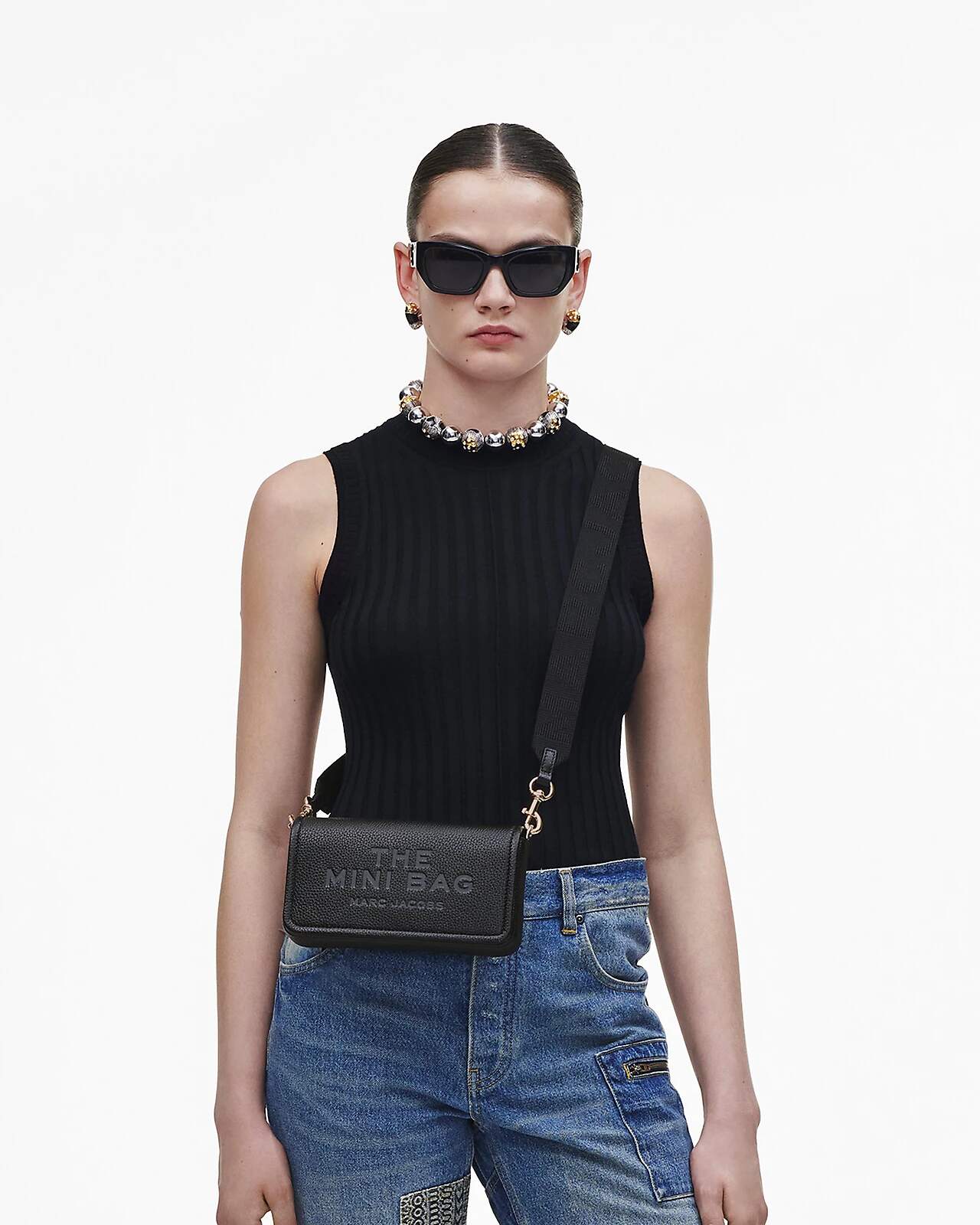 Marc jacobs, Die zweifarbige doppelt gequiltete Umhängetasche in Weiß und Schwarz