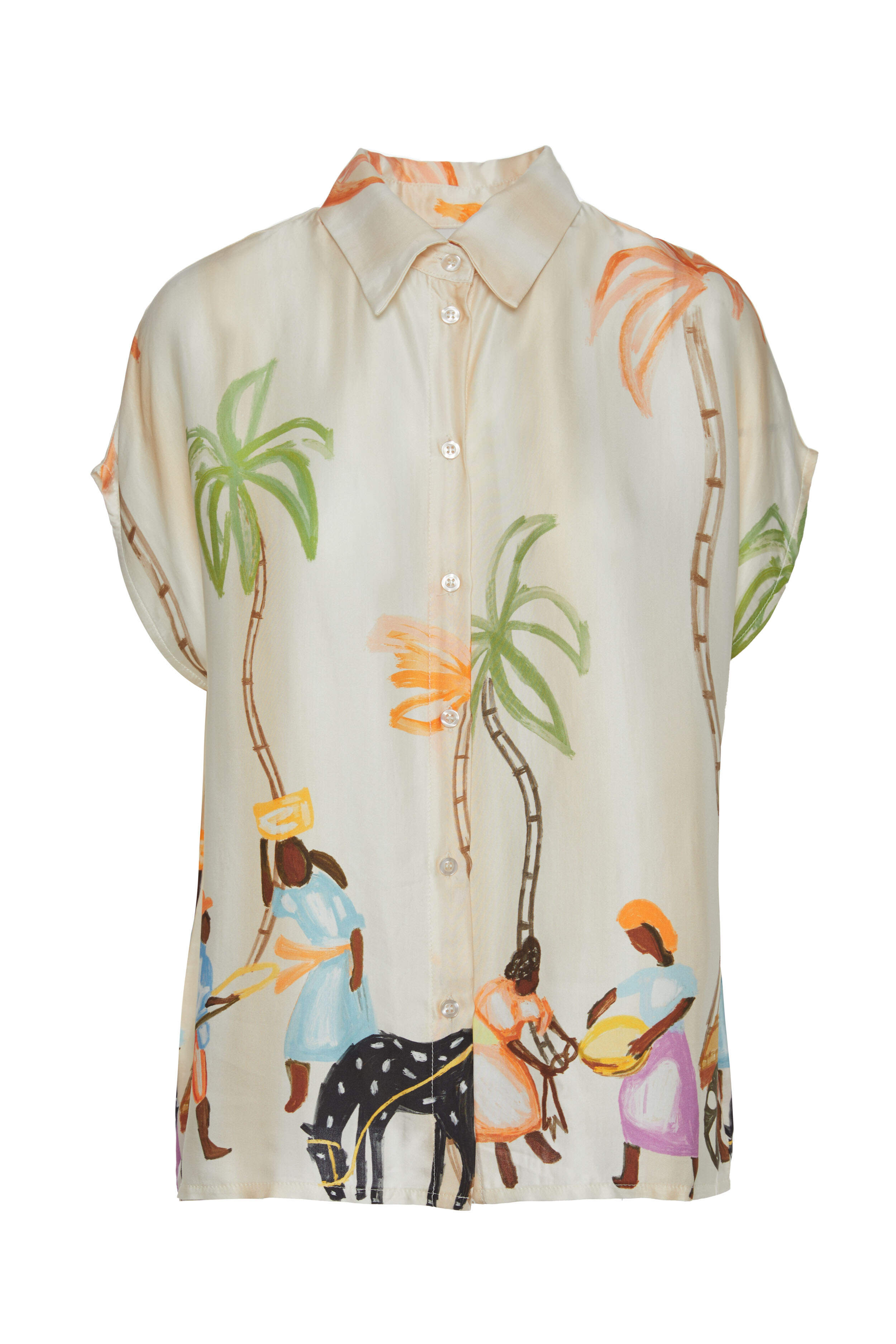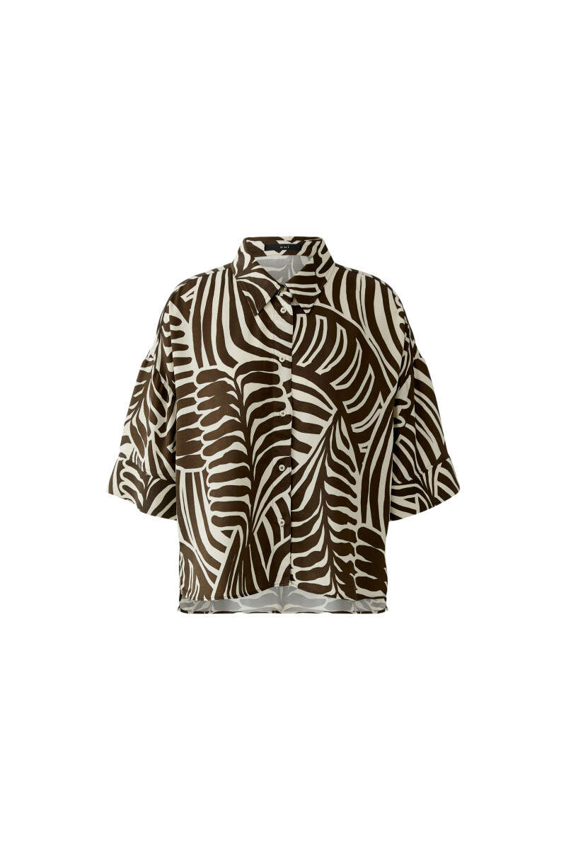 Blouse with an all-over graphic print and shirt collar