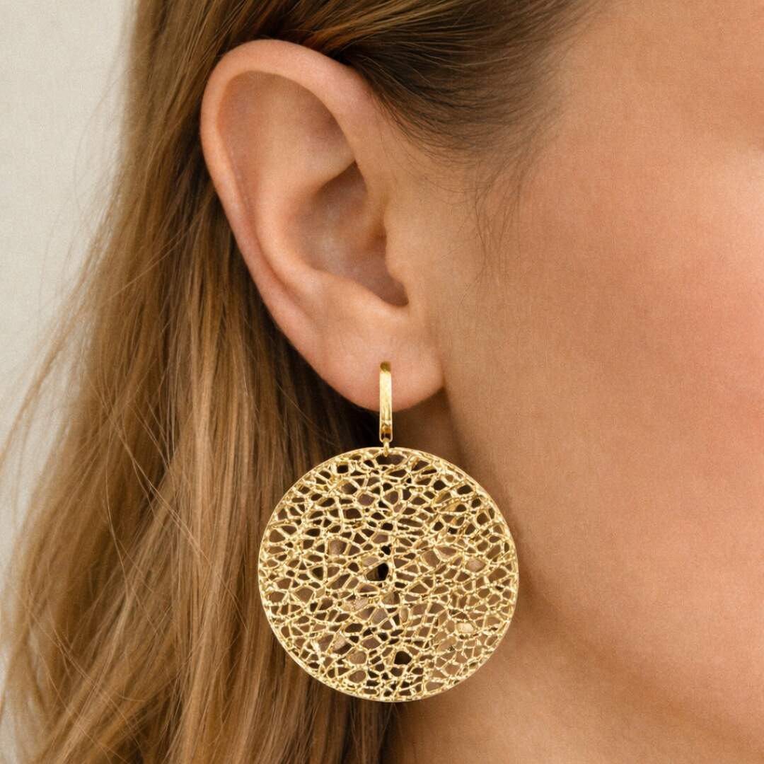 OS5-609 Earrings Ciliegine Anice \"Boules\" made of engraved gold, diamonds, rock crystal and amazonite (medium)