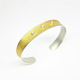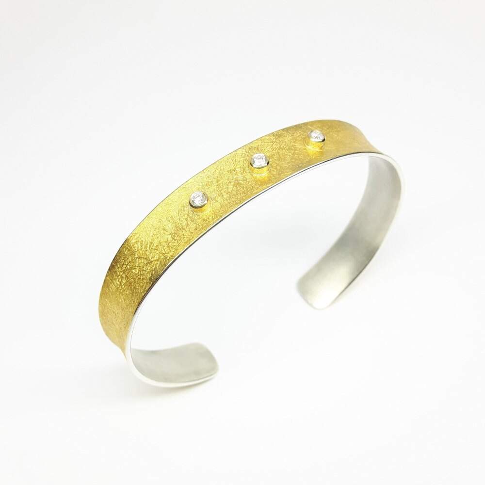 Cuff bracelet made of 24k gold, 925 silver and 2.2 mm diamonds.