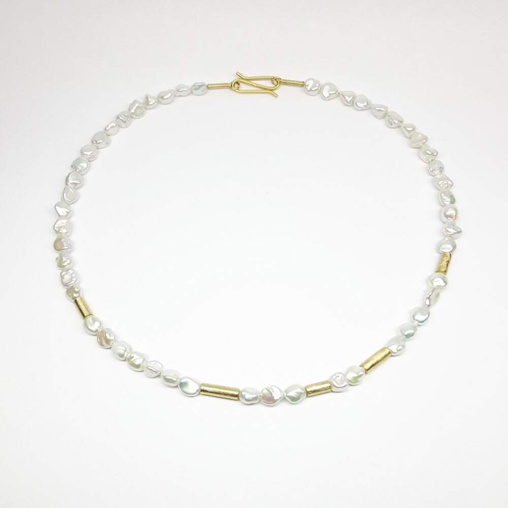 18k yellow gold necklace with freshwater Keshi pearls. One-of-a-kind.