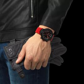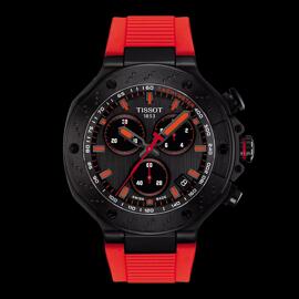Tissot T-Race watch with quartz movement, chronograph, 45mm black case with red silicone strap