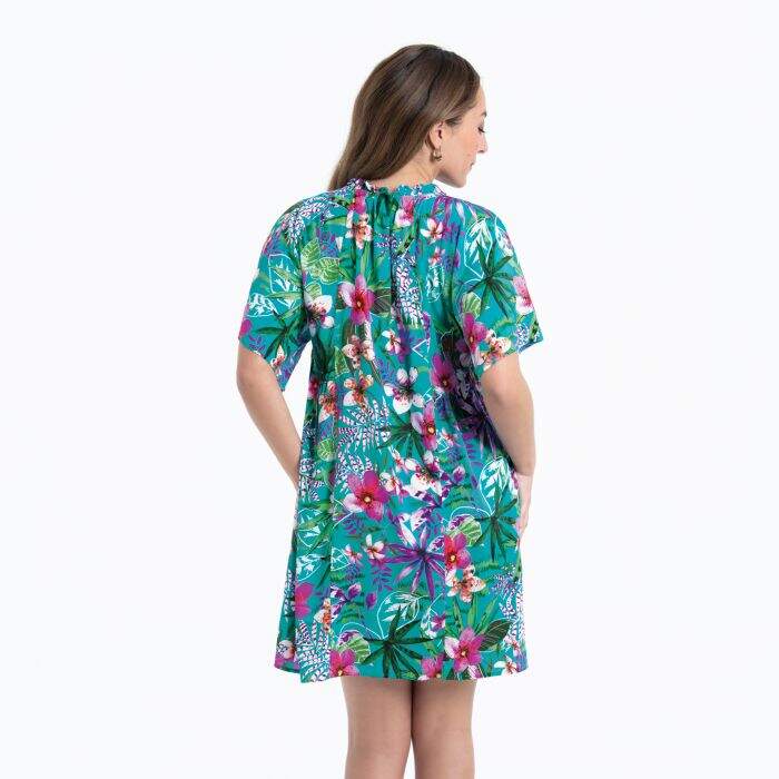 Short-sleeve dress with a graphic all-over print