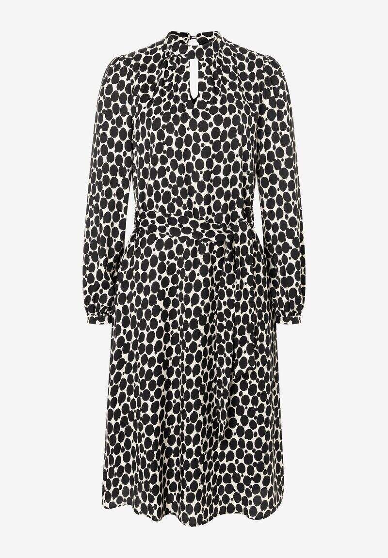Midi-length shirt dress with a pattern and a tie belt