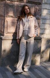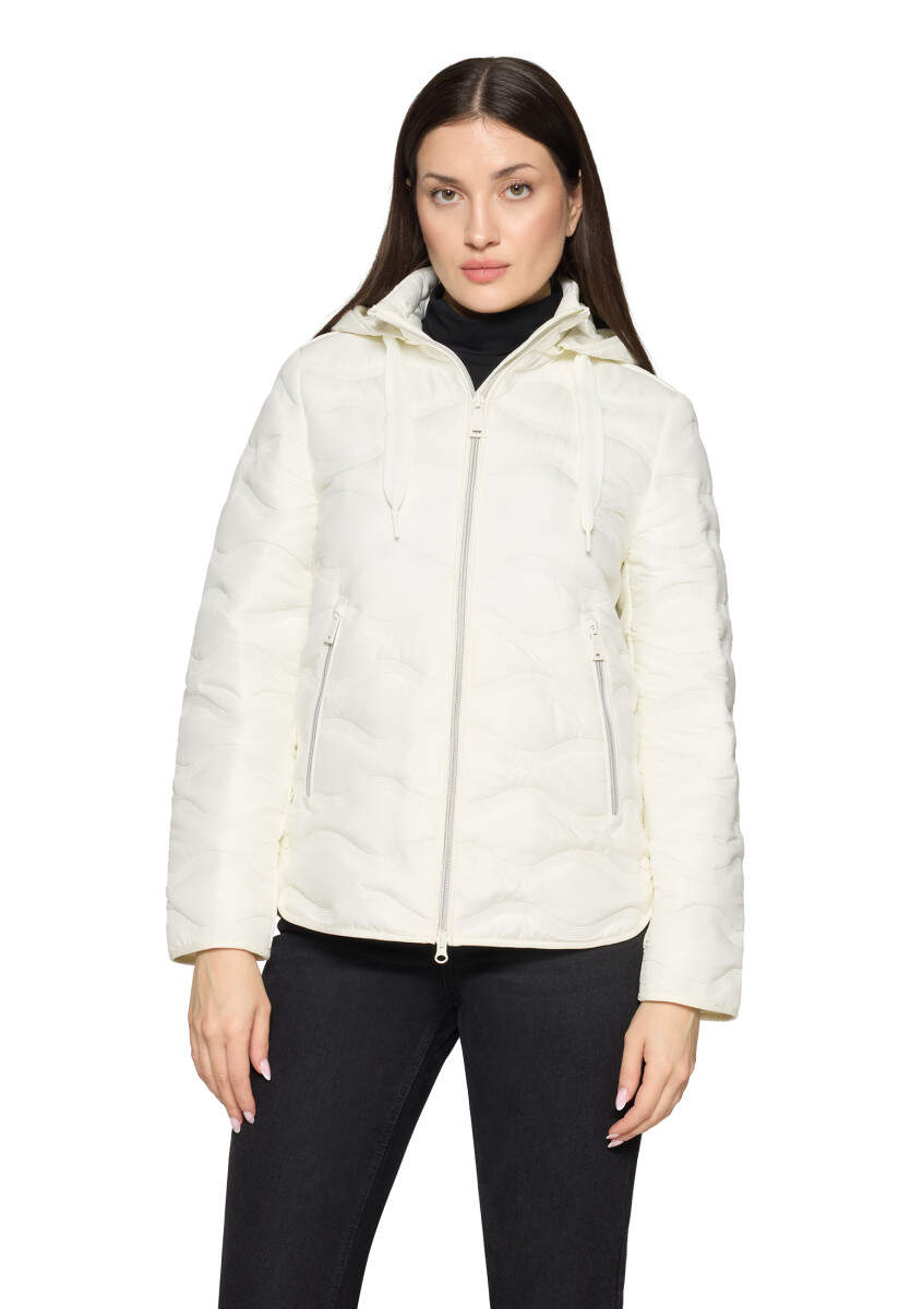 Warm quilted jacket with a stand-up collar.