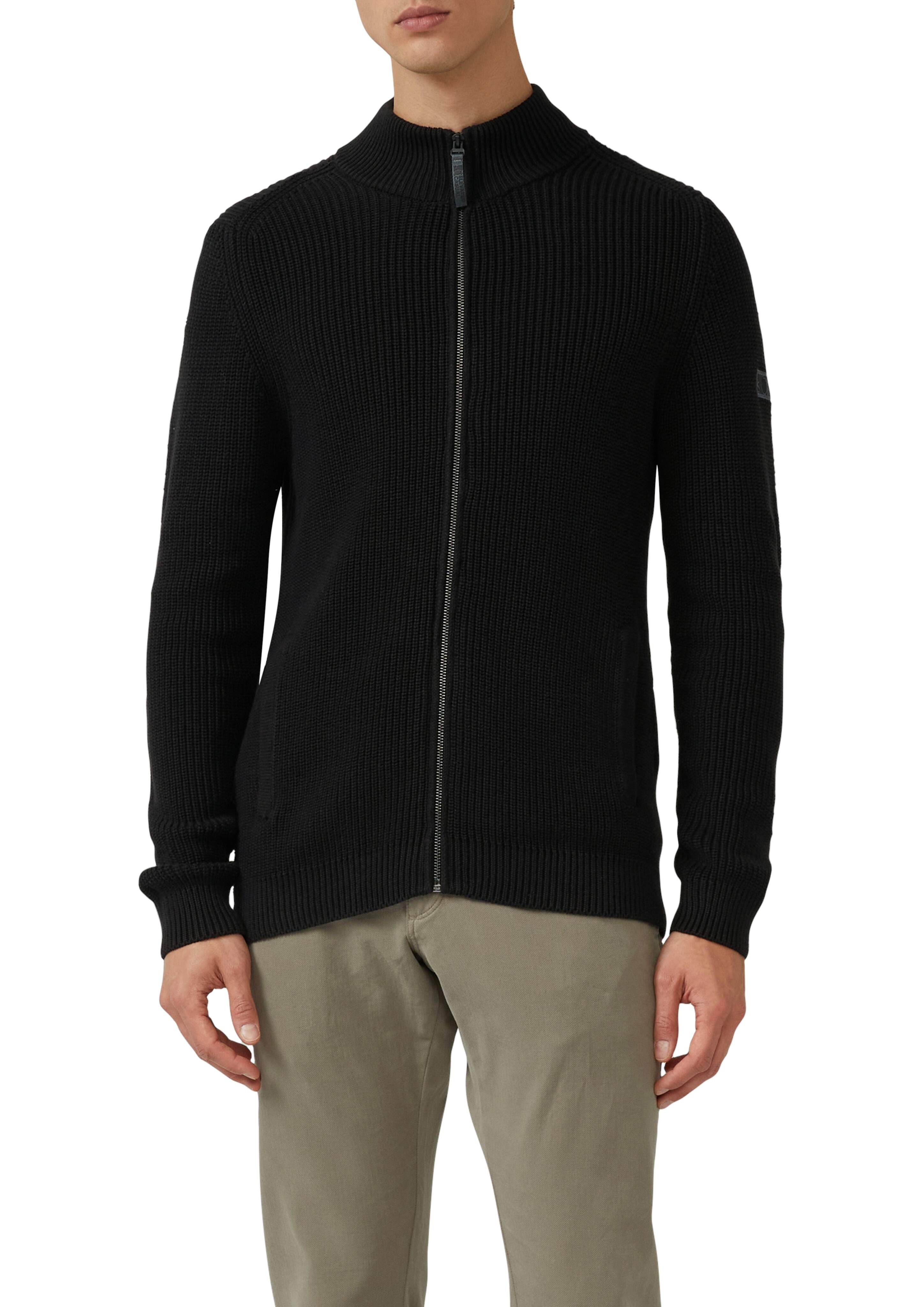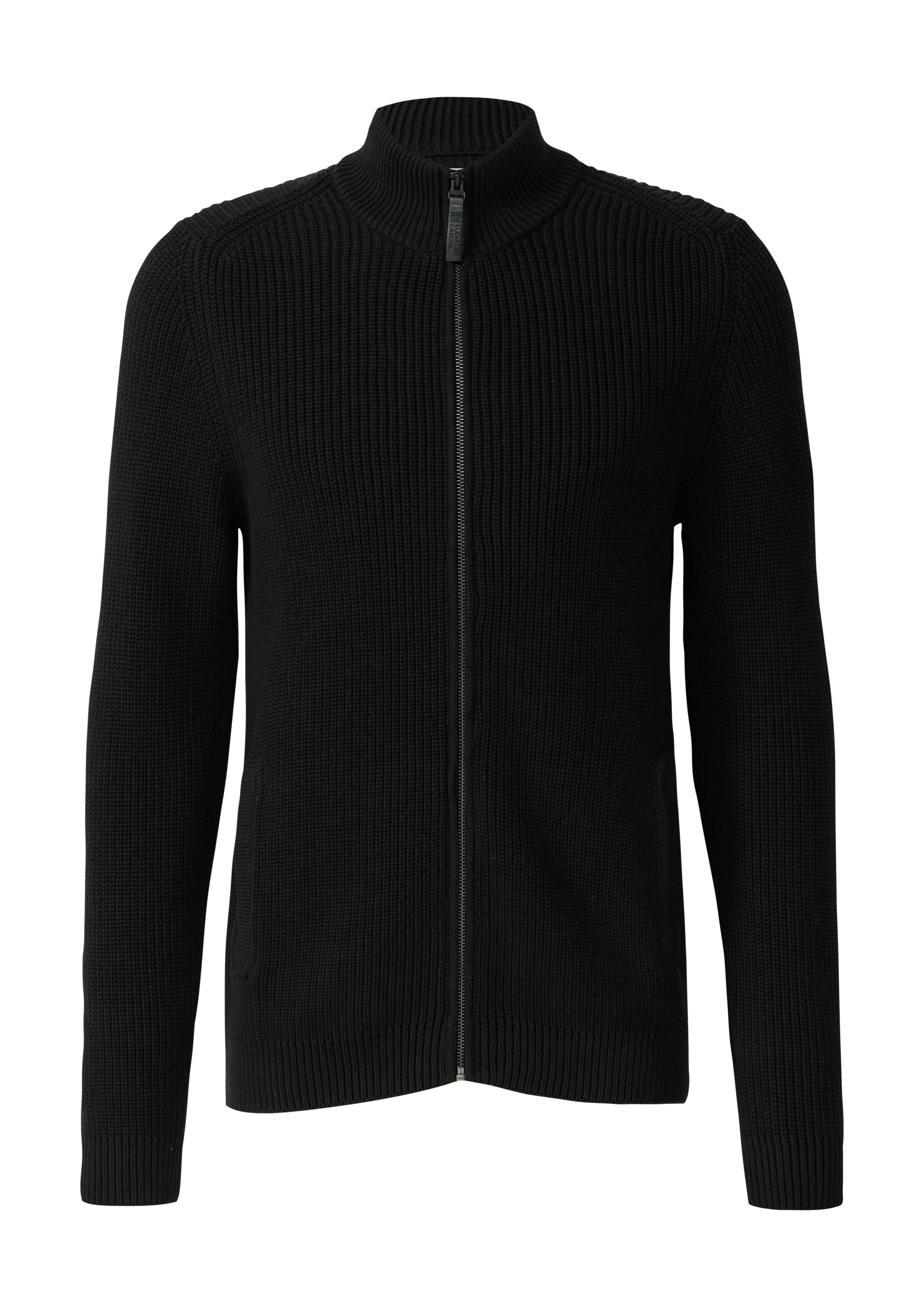 Zipped cardigan with stand-up collar