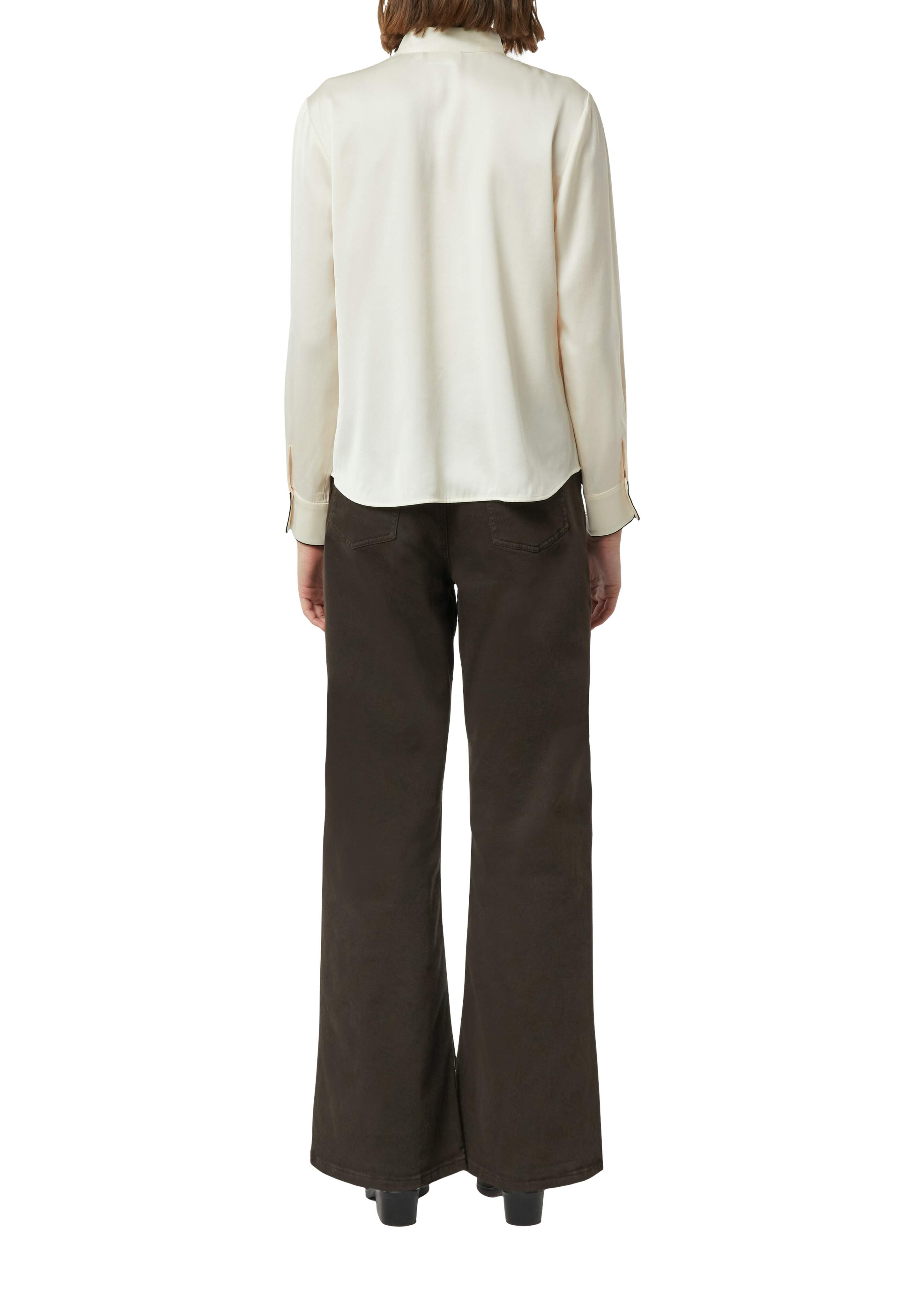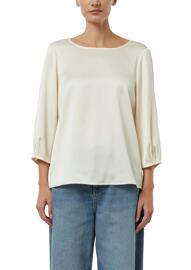 Satin blouse with a V-neck and fine rib detailing