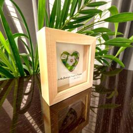 Millefiori glass heart in a natural wood frame, unique, handmade