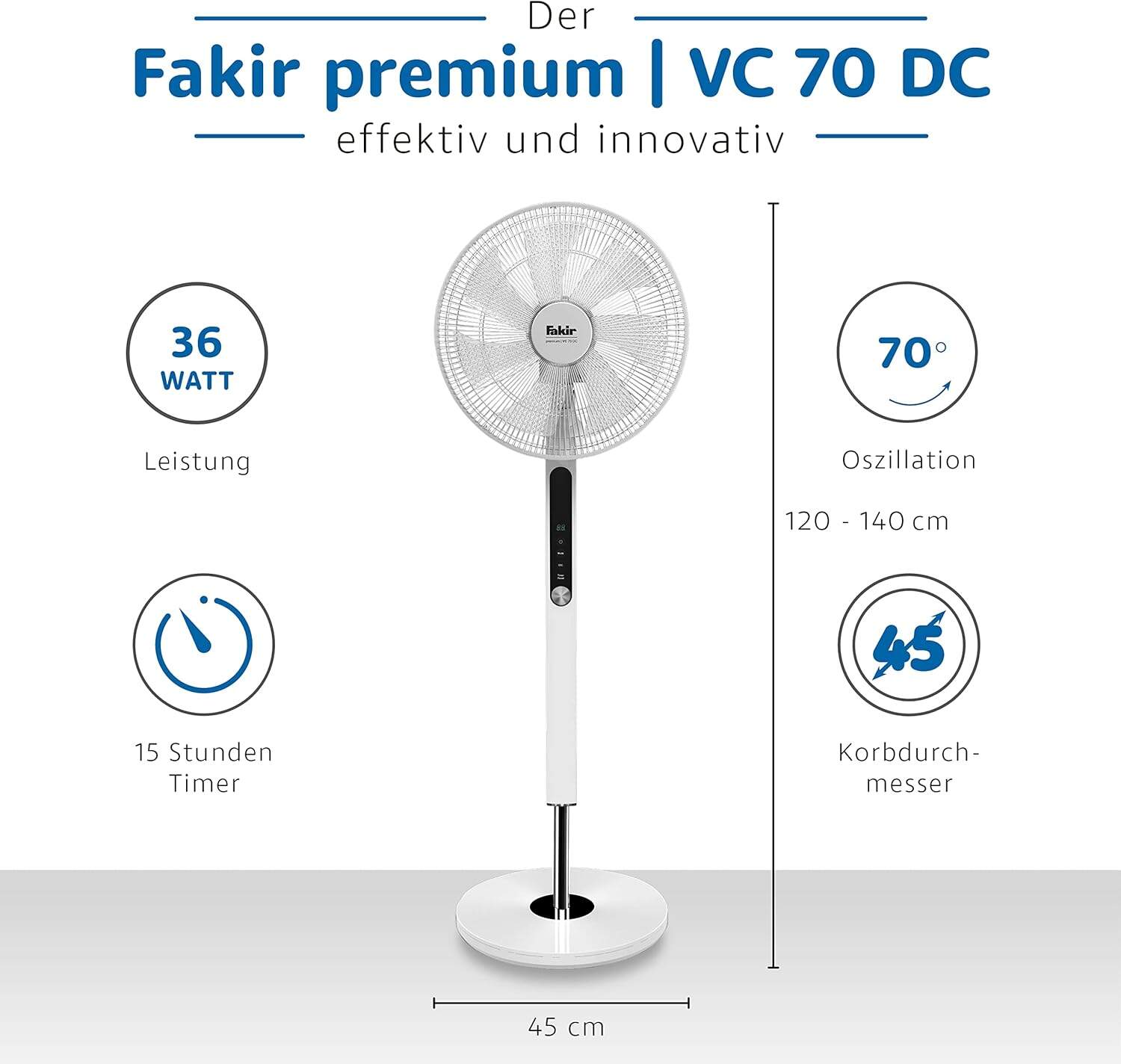 Fakir Premium VC 70 DC - Height-adjustable pedestal fan with remote control and 22 power levels