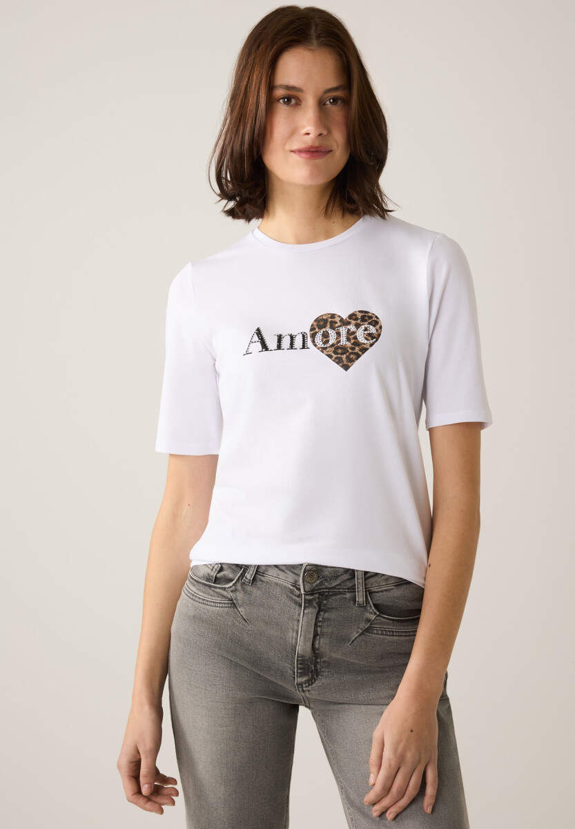 T-shirt with text and a heart