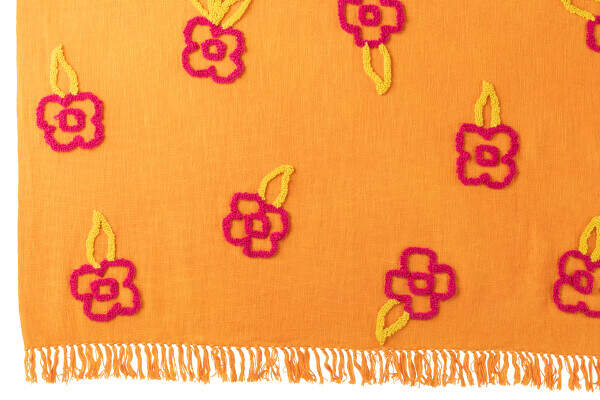 colorful floral plaid - pink, orange, yellow - cotton - 130 x 180 cm 51884