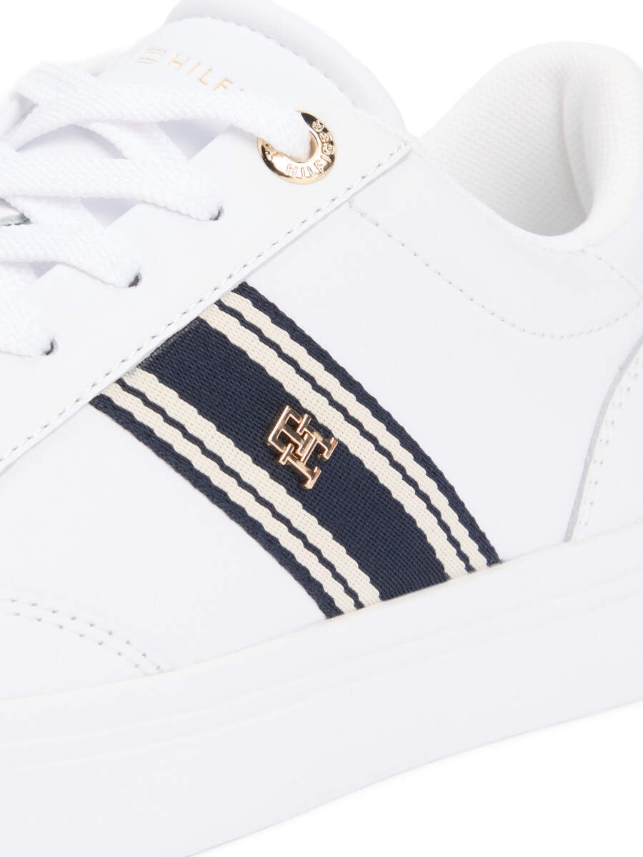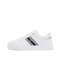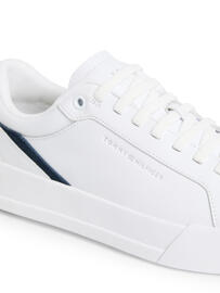 Leather sneaker with cupsole and strap detail