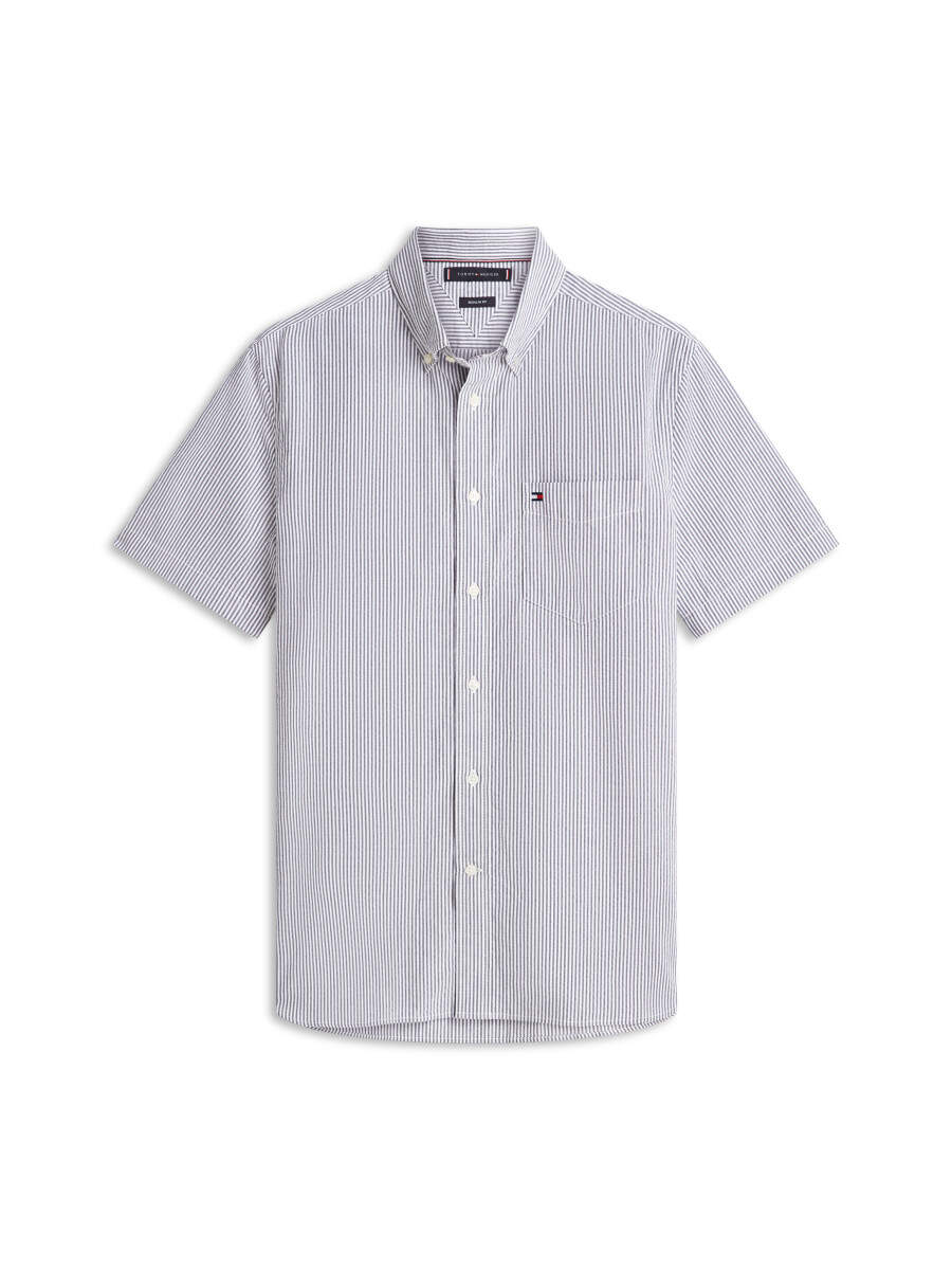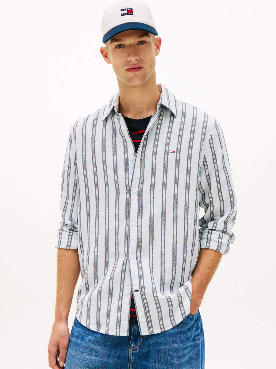 Striped short-sleeve shirt made from a linen blend