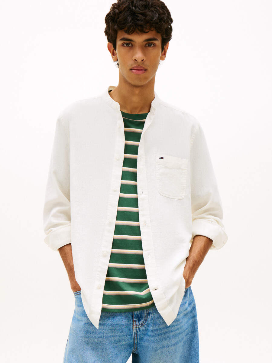 Regular Fit Linen-Blend Shirt with Stand Collar
