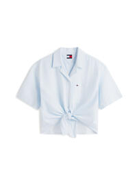 Short-sleeve blouse in a linen blend with knot detail.