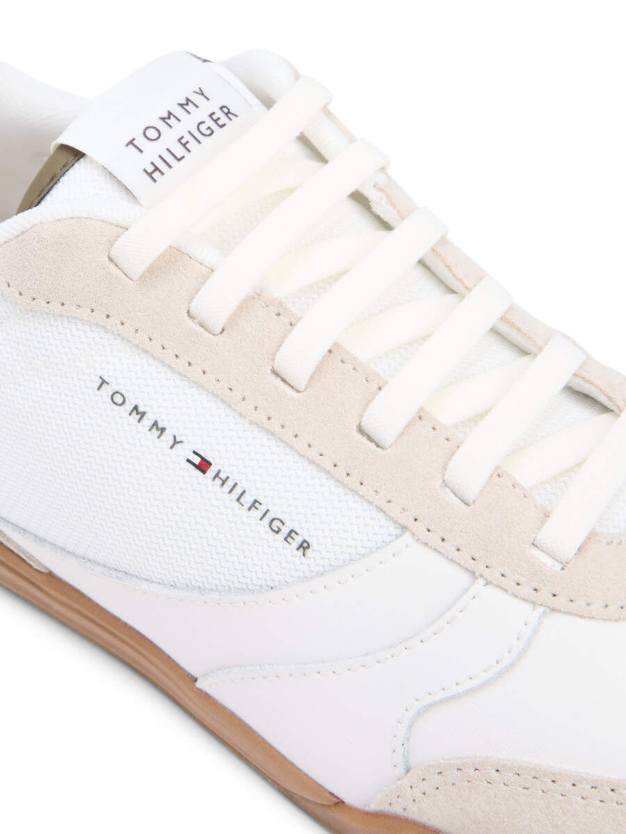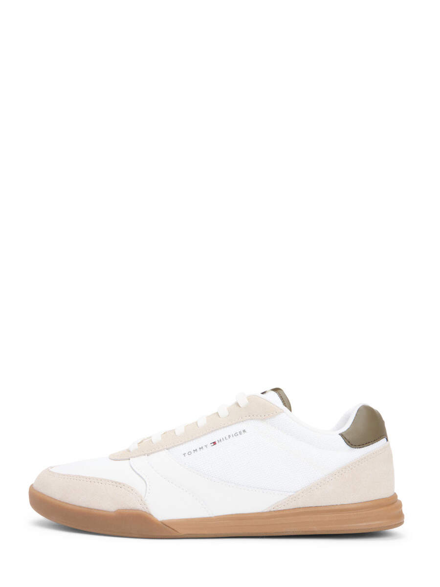 Leather court sneaker with contrast panels