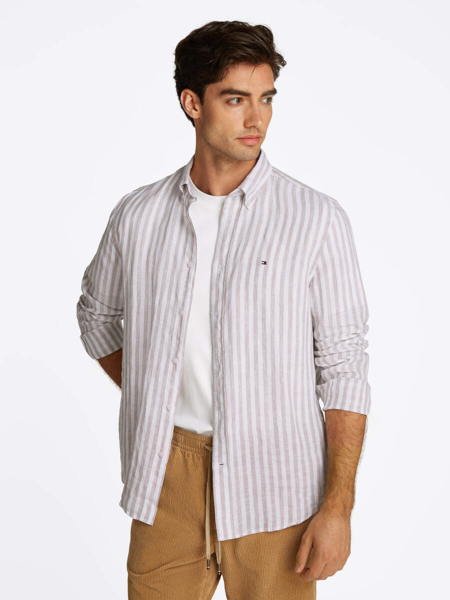 Regular-fit shirt in a linen blend with stripes