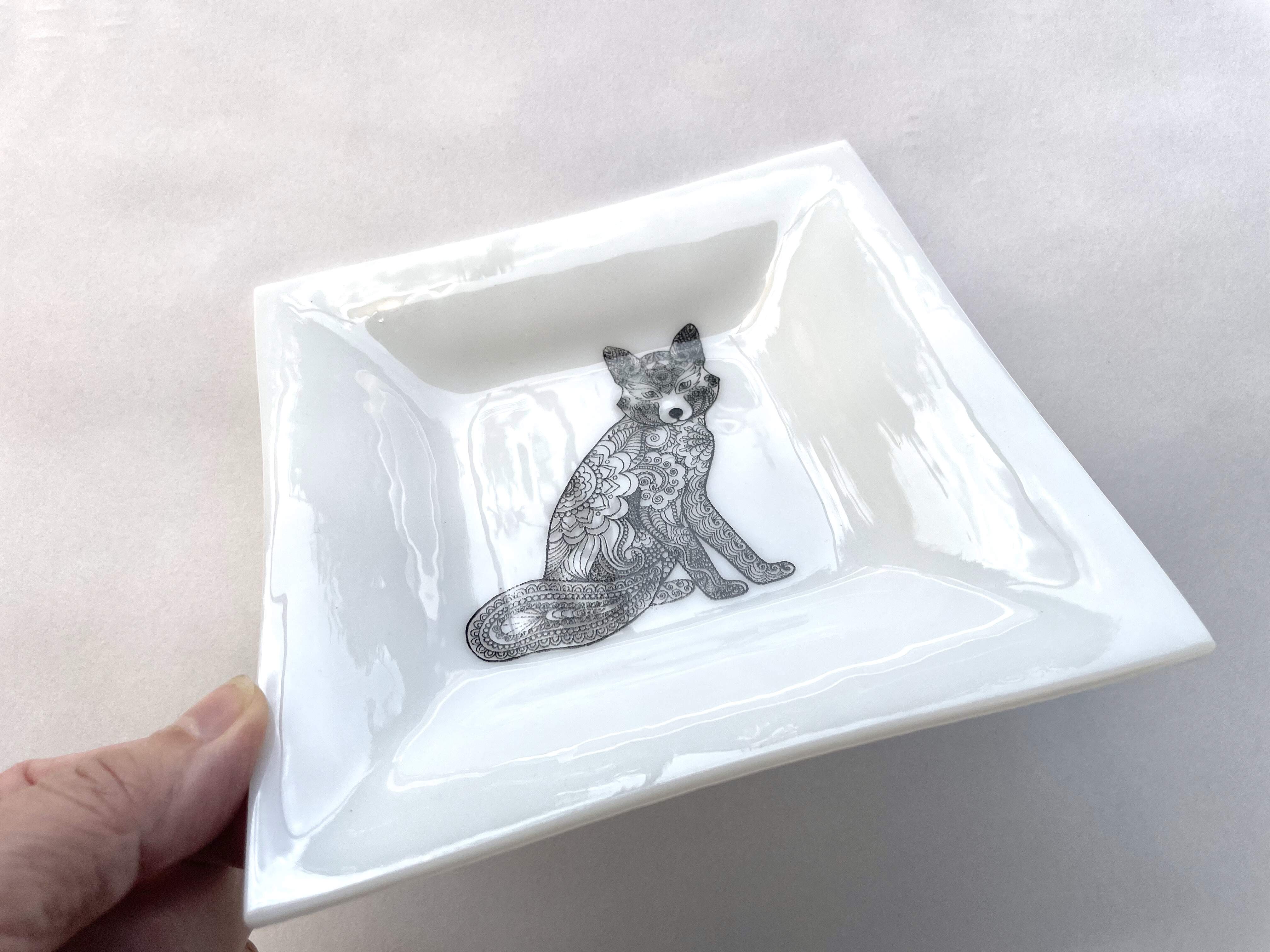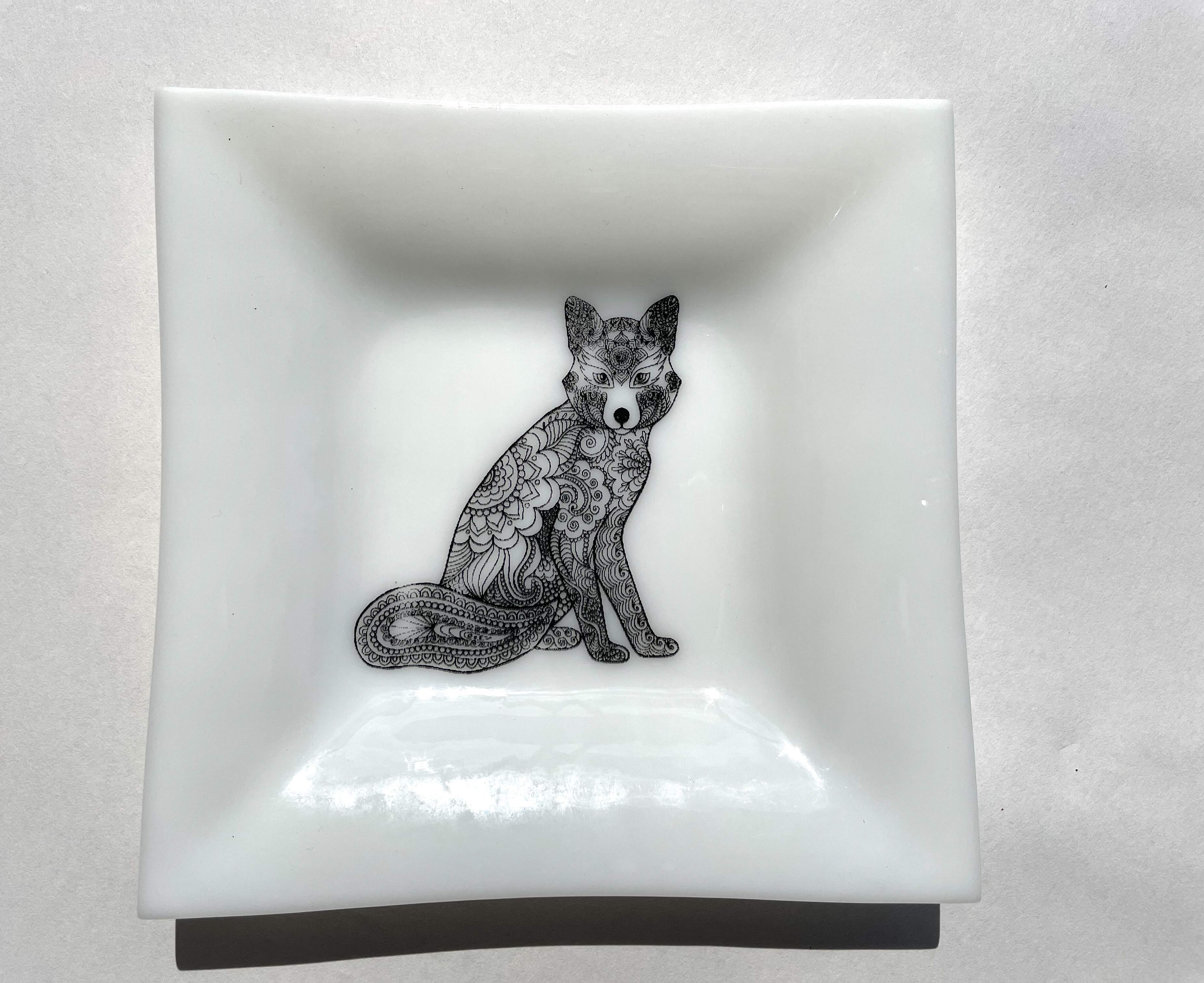 Glass plate with fox motif, handmade, opaque glass