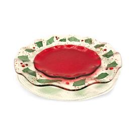 Round bowl made of glowing glass, very festive for Christmas, handmade, one-of-a-kind
