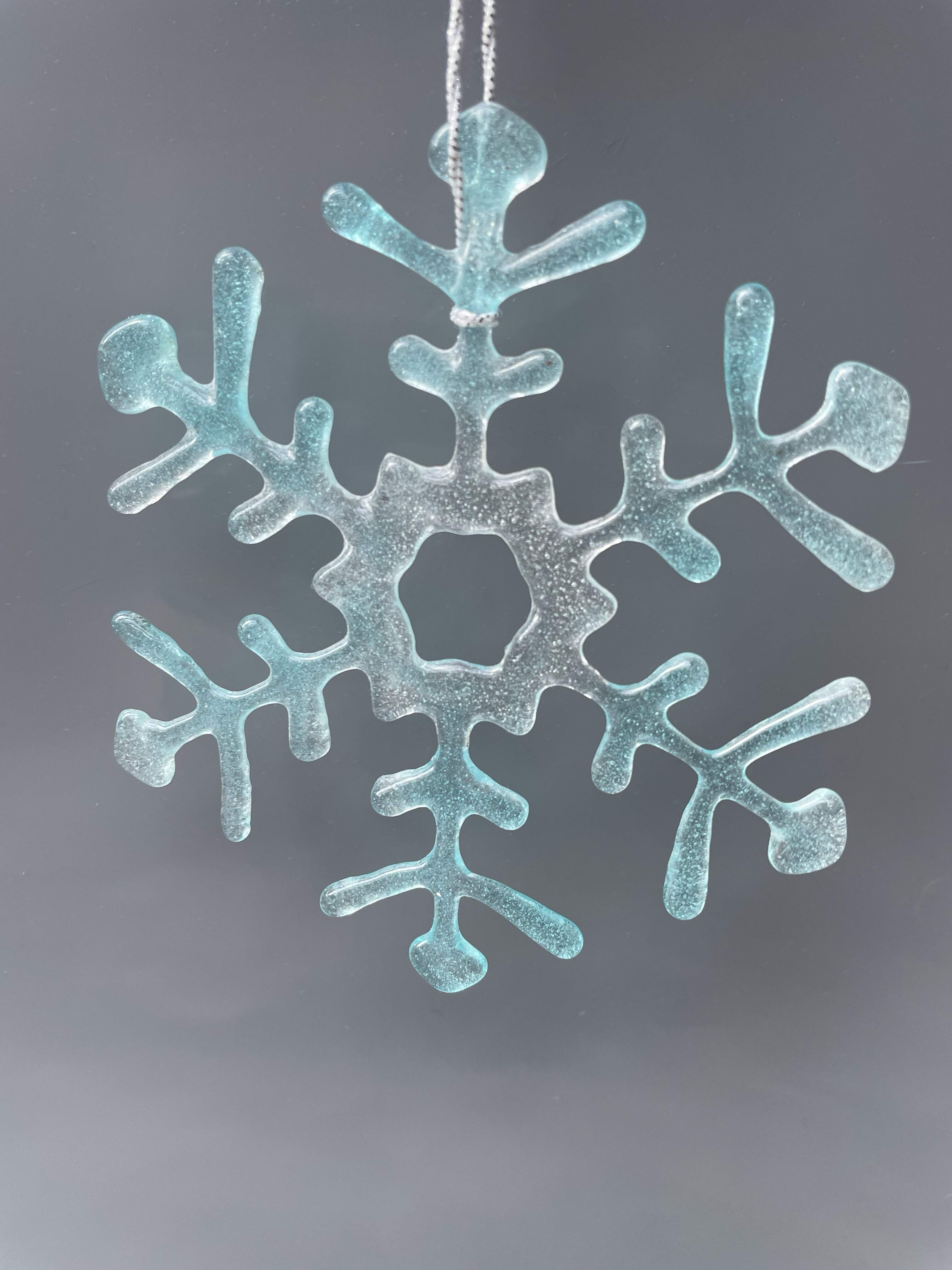 Glass snowflake "MADE IN LUXEMBOURG" - sky blue - Design 1