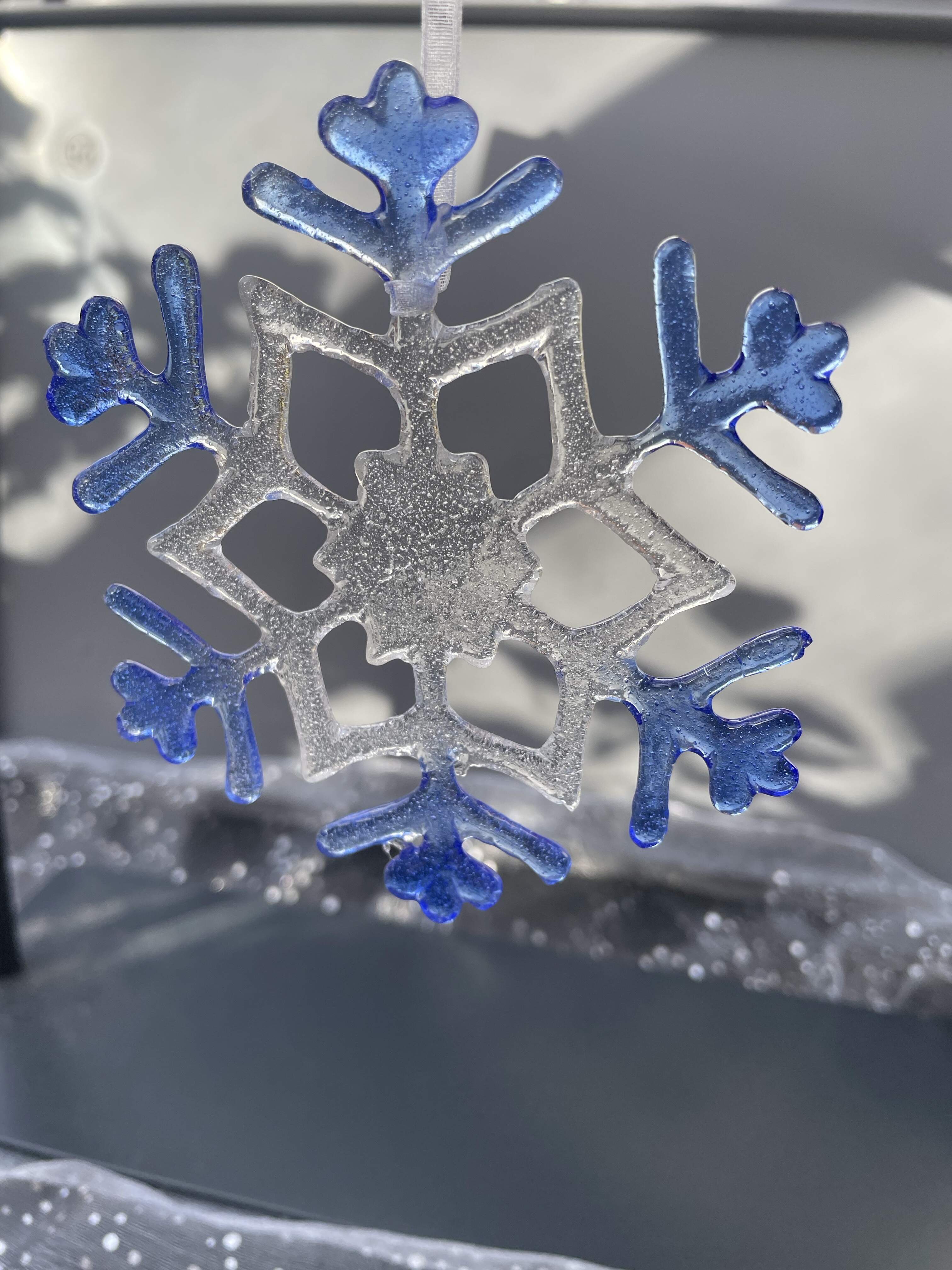 Glass snowflake "MADE IN LUXEMBOURG" - blue - Design 1