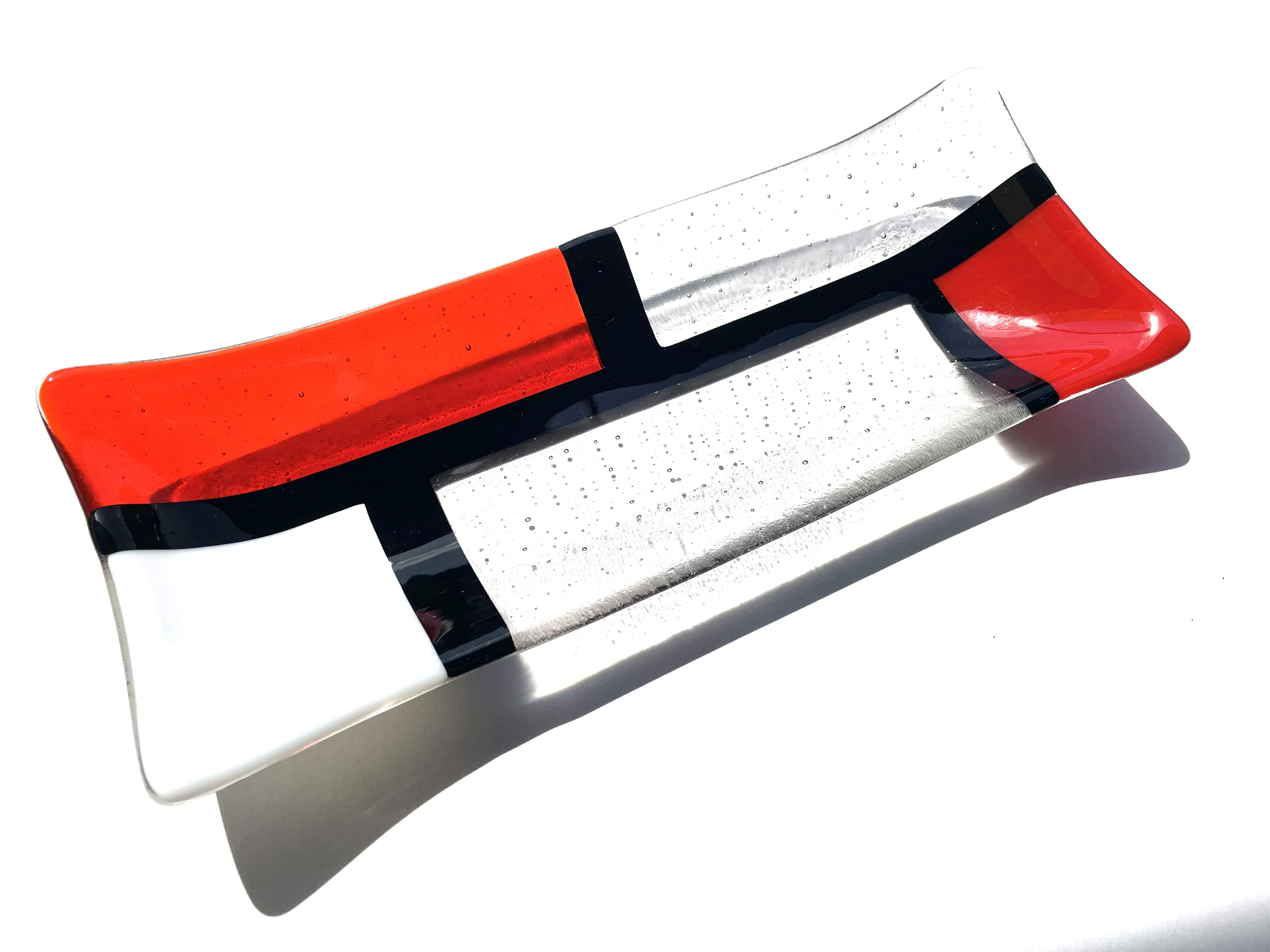 Rectangular glass bowl, "Mondrian", handmade, red, unique piece