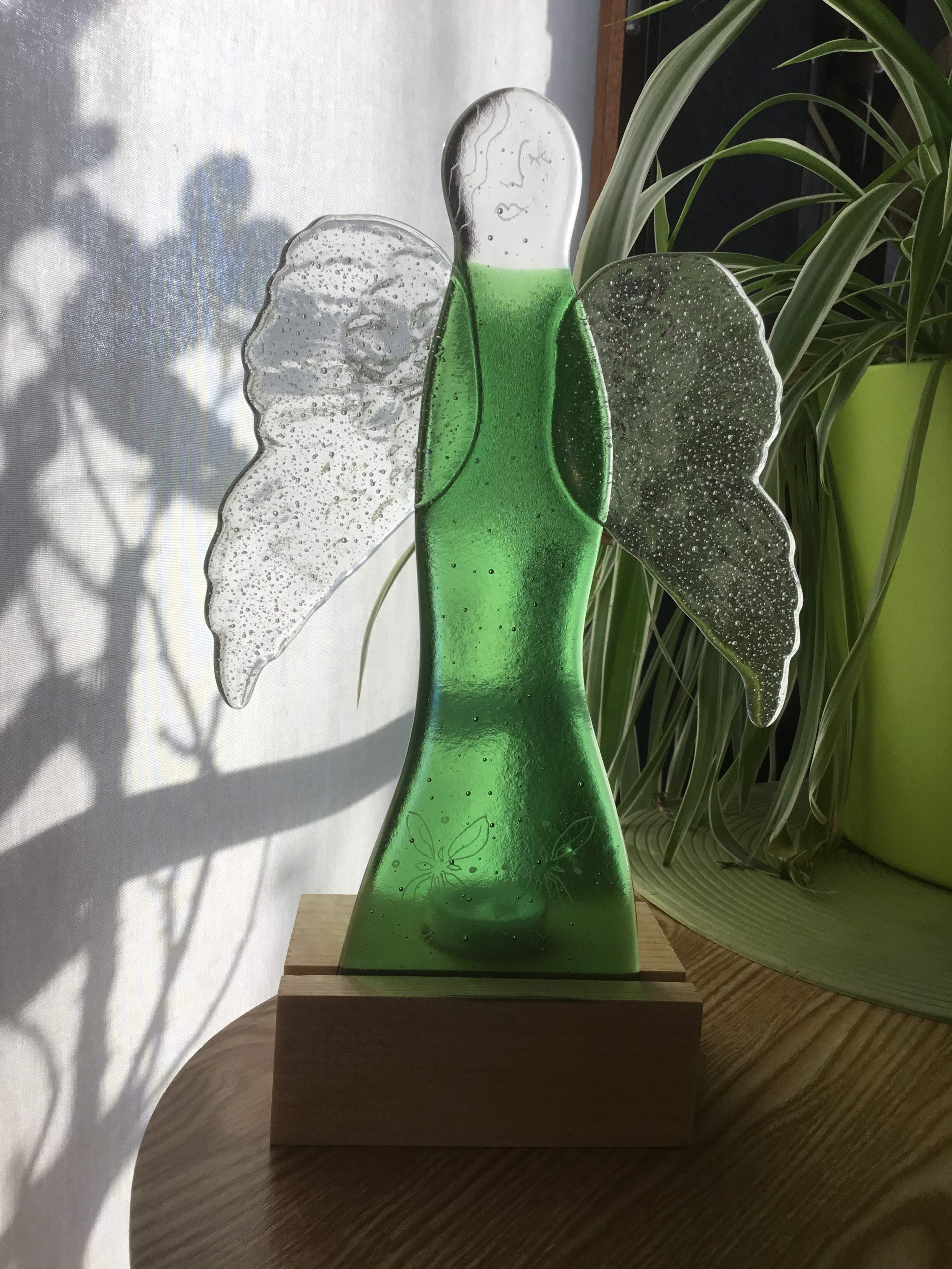 Glass angel with engravings, tea light, handmade, single piece