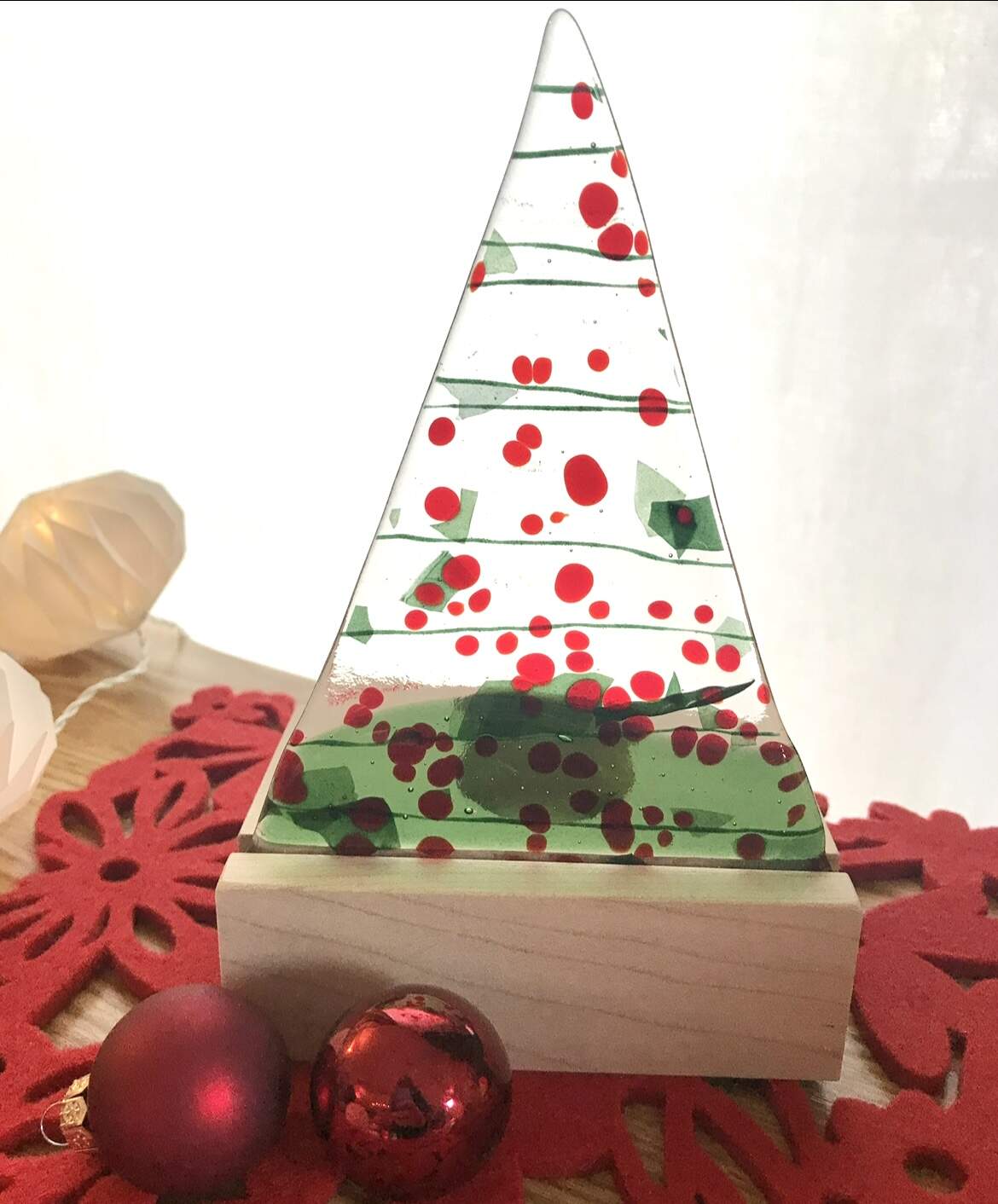 Handmade glass Christmas tree with tealight