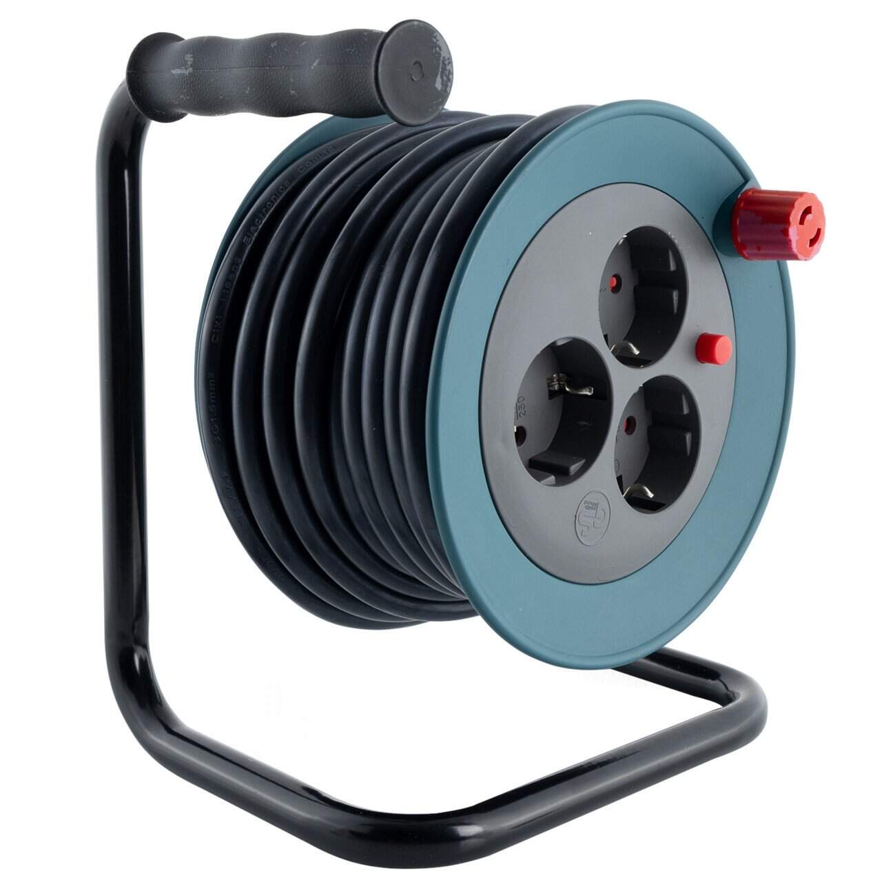 REV Enrouleur de câble intérieur de 10 m H05VV3g 1,5 mm² bleu pétrole, 3 prises Schuko