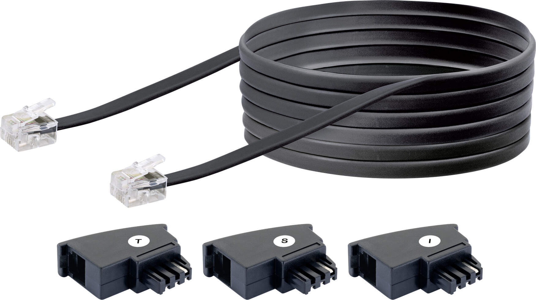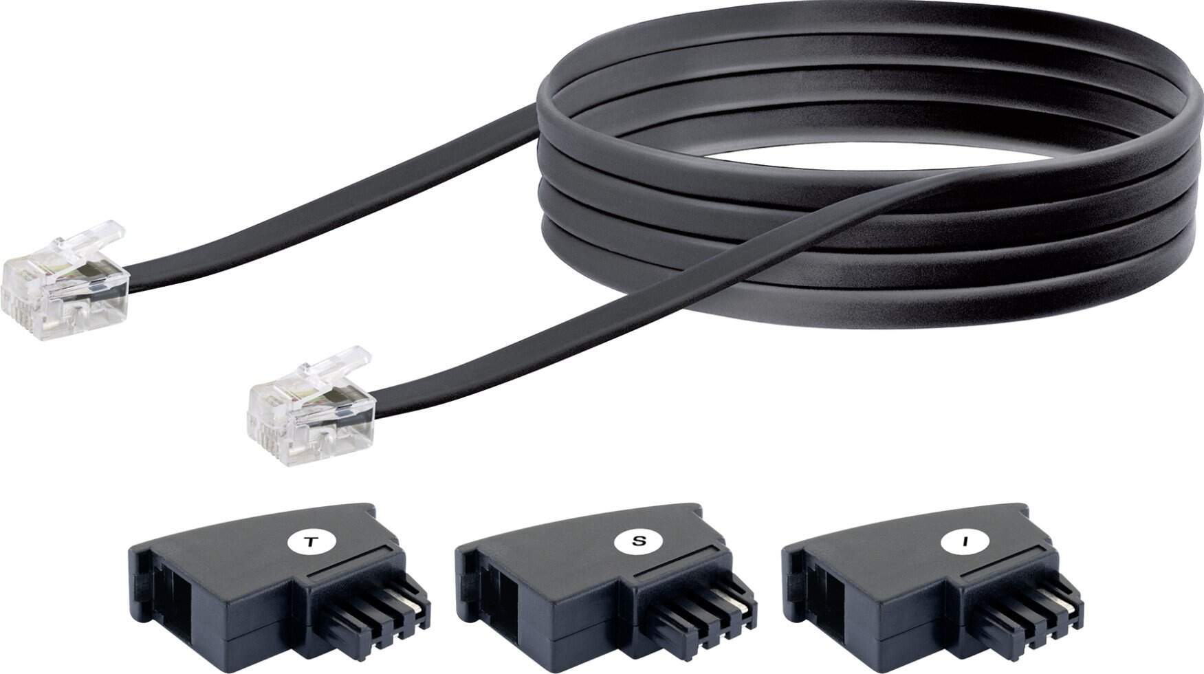 Schwaiger Câble de raccordement téléphonique TAL6310 533 TAE (F) RJ11 noir, 10,0m, 3x TAE (F) / 1x RJ11
