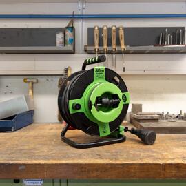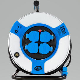 REV Enrouleur de câble intérieur 10 m H05VV-F 3G1,5 mm² bleu pétrole 3 fiches Schuko