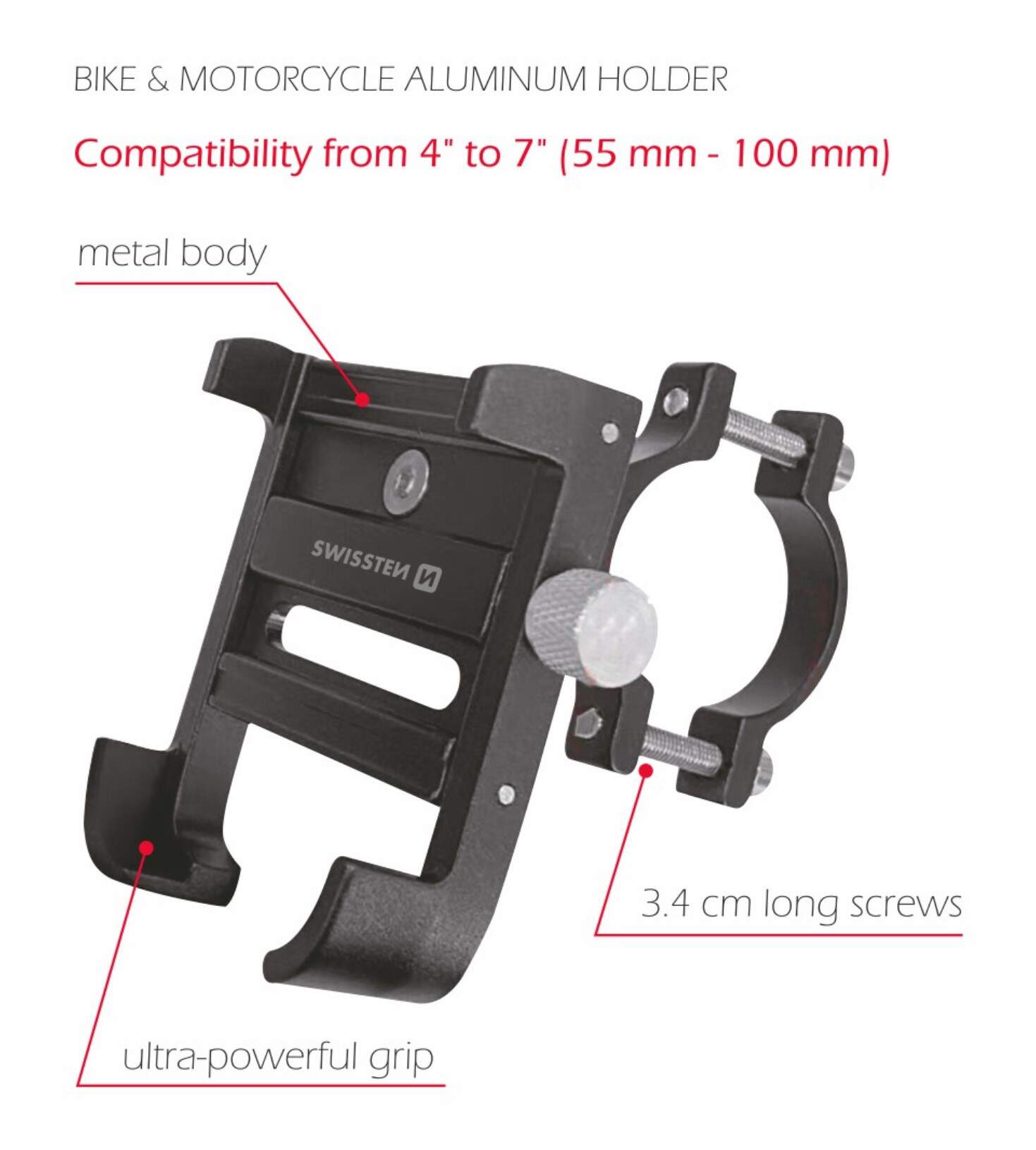 SUPPORT TELEPHONE MOTO & VELO SWISSTEN ALUMINIUM BC1