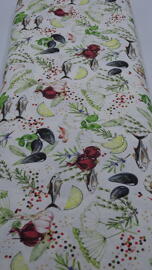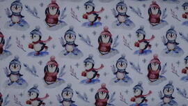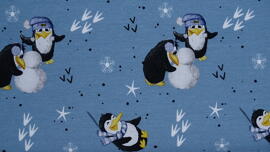 French Terry, Funtarktis by Sabine Marschal (Pingouins sur fond bleu fumé)