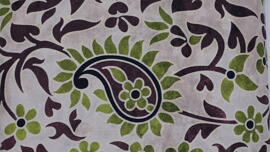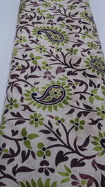 Tissu en viscose, paisley + fleurs en vert/brun