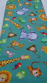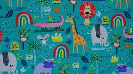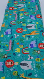 tissu coton, jungle safari (jeunes animaux colorés sur fond vert)