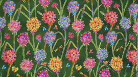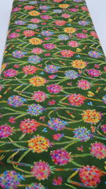 tissu en coton, Flora Fun (fleurs colorées sur fond vert)